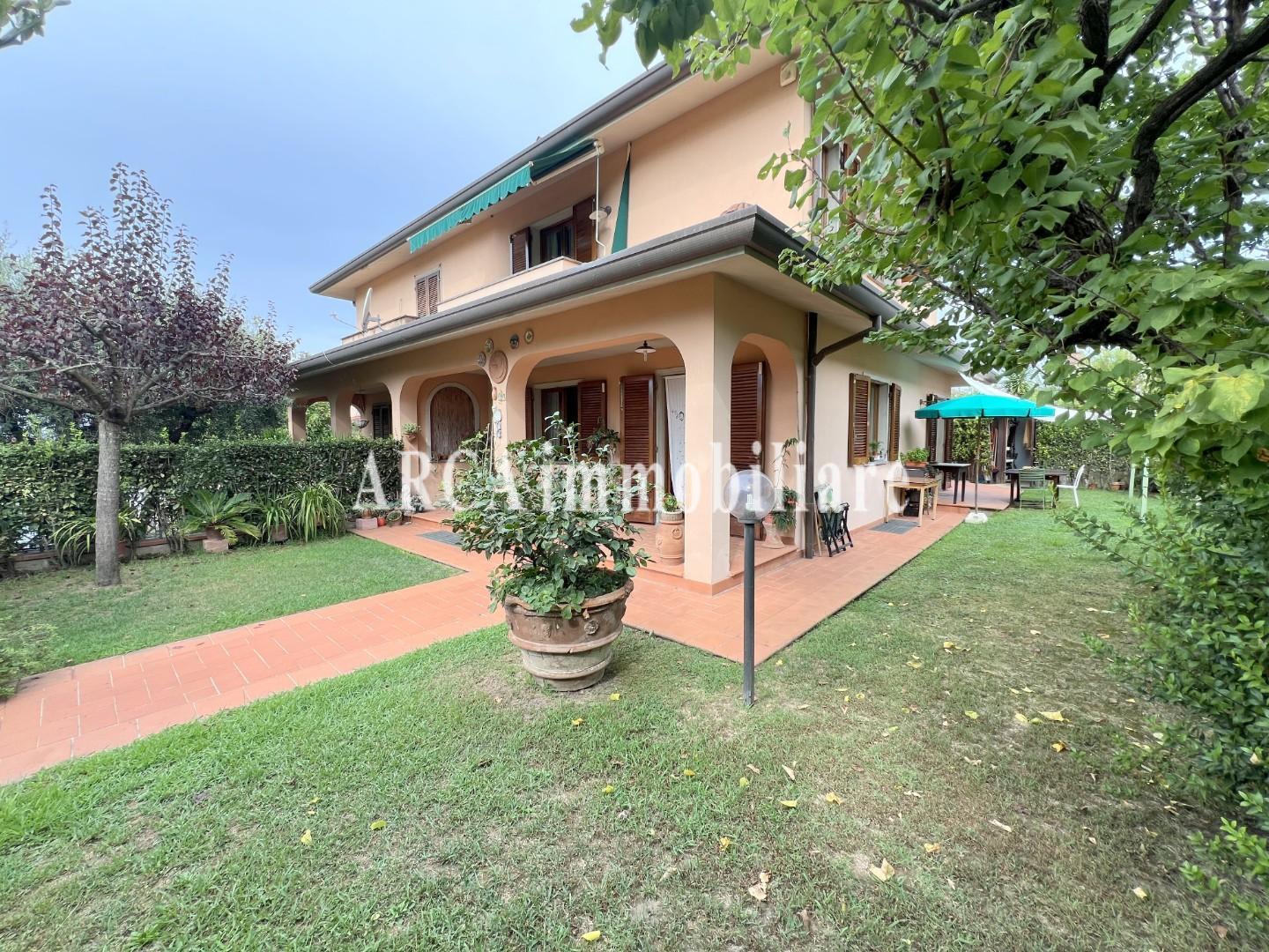 ***.*******.** 2439 - Pietrasanta non lontano dal centro storico, villa in bifamiliare (costruita nel 1995) in ottimo stato di manutenzione composta da veranda, soggiorno, cucina abitabile, studio7cameretta, servizio al piano terra, camera matr ***.*******.** bagno e balcone, camera media con balcone cameretta e altro bagno al primo piano, taverna con camino e altri 2 vani nel seminterrato, Giardino su 3 lati. Area di proprietà per posti auto. Bella la posizione Contatta l'inserzionista