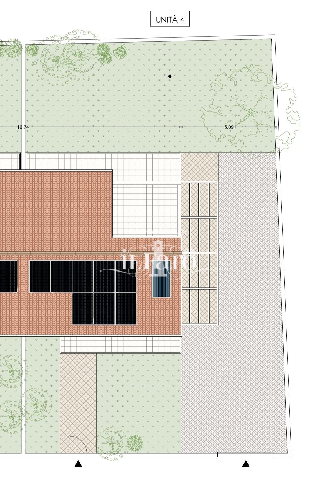 Giardino di circa 350 mq. Finiture di alto livello, impianto di condizionamento, sistema d'allarme, fotovoltaico, impianto di riscaldamento a pavimento.