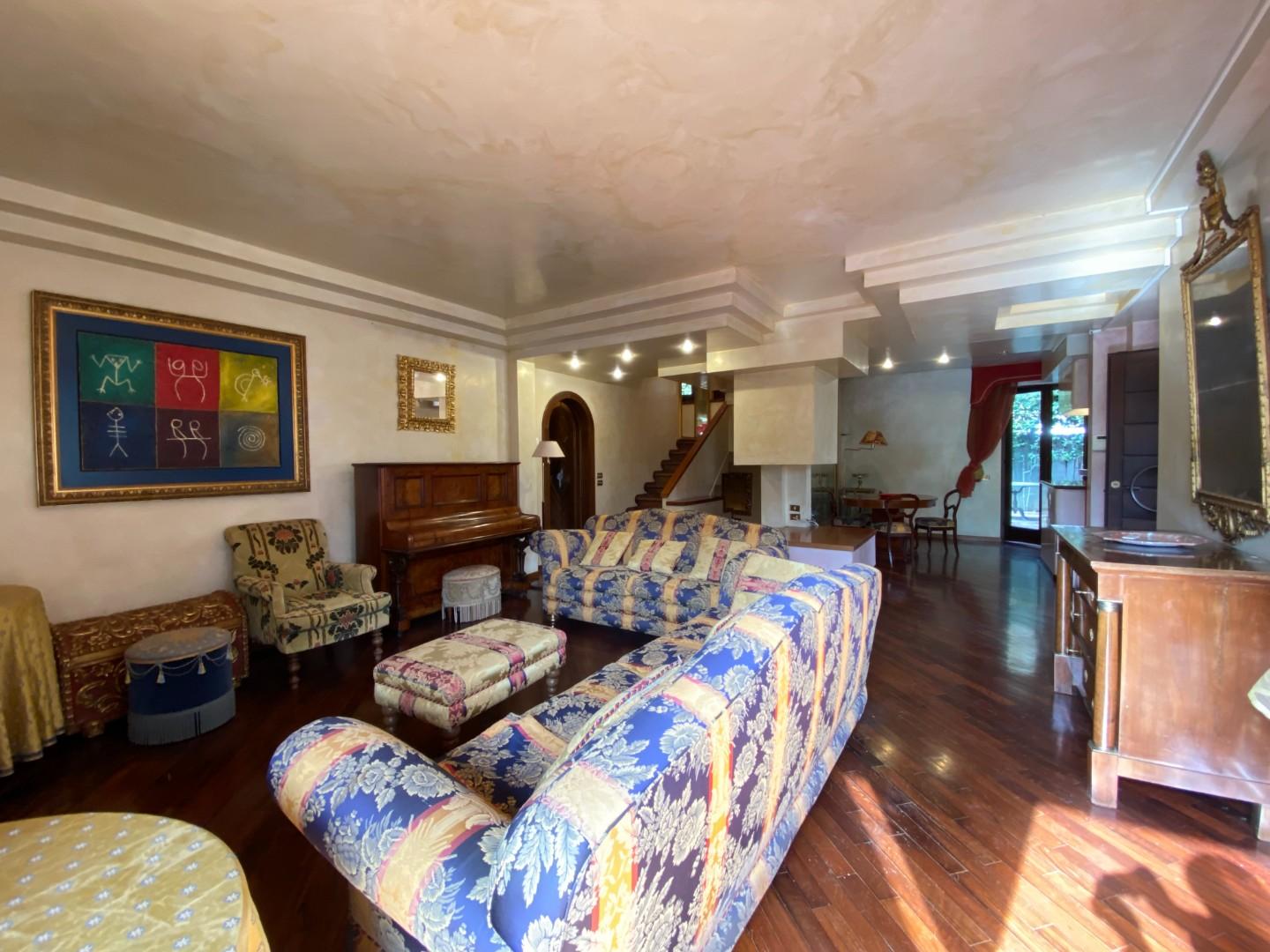 Completa la proprietà piano in parte seminterrato con taverna con camino e forno, stanza lavanderia predisposta come camera, bagno finestrato e garage doppio di circa mq. 40. L' immobile si predispone anche per essere un'ottima soluzione per genitori/figli.