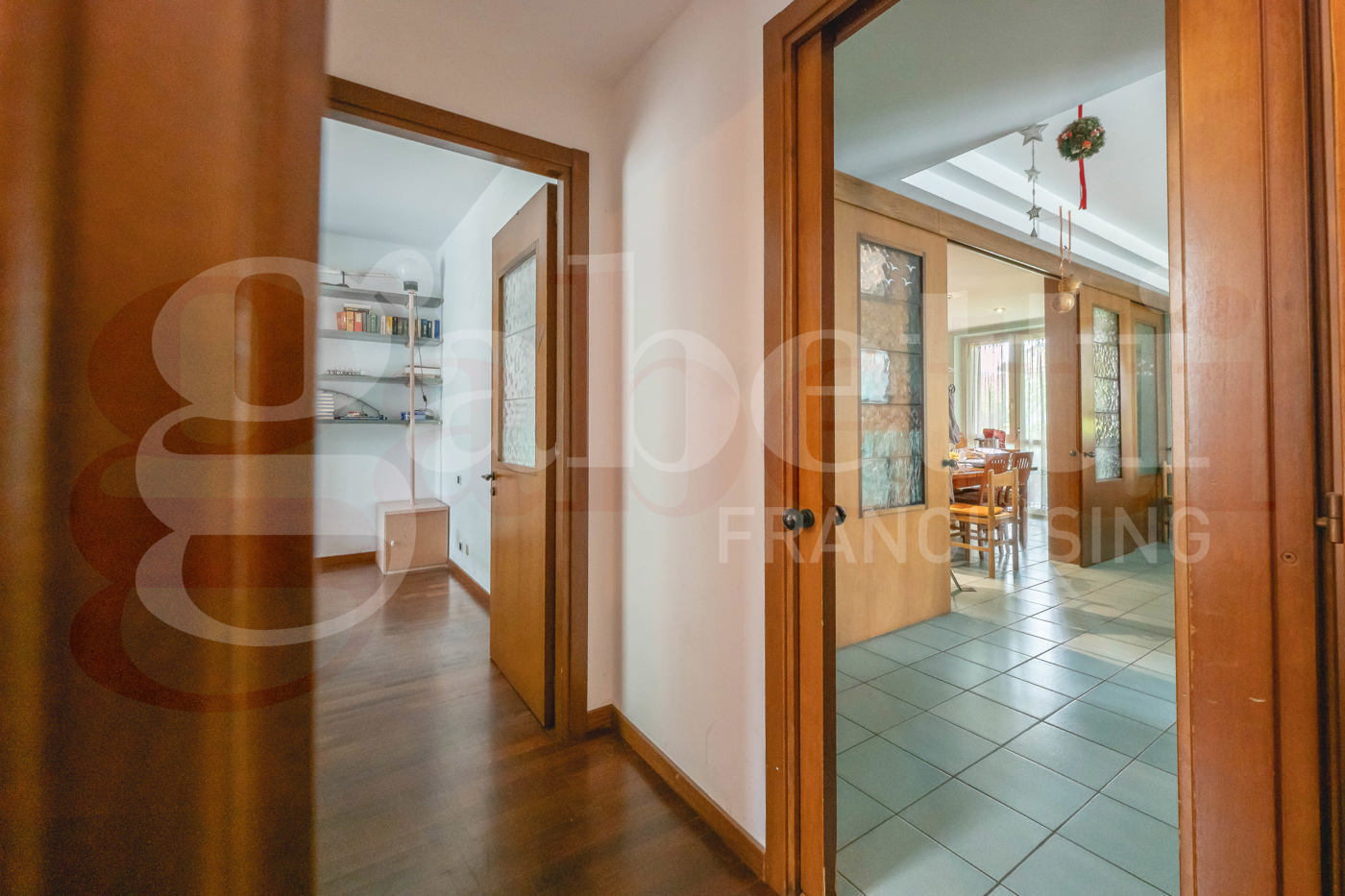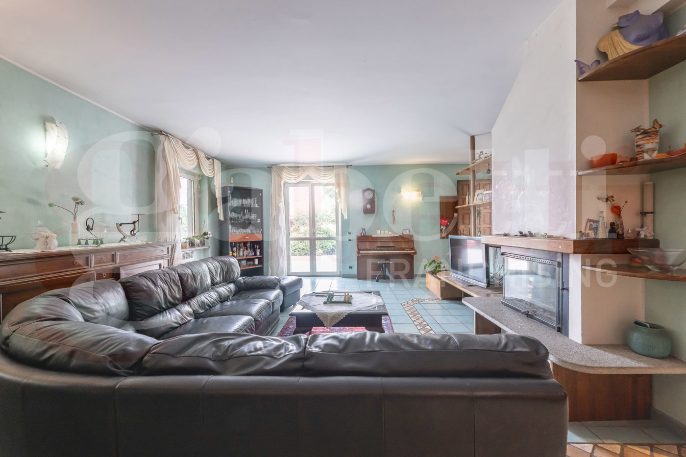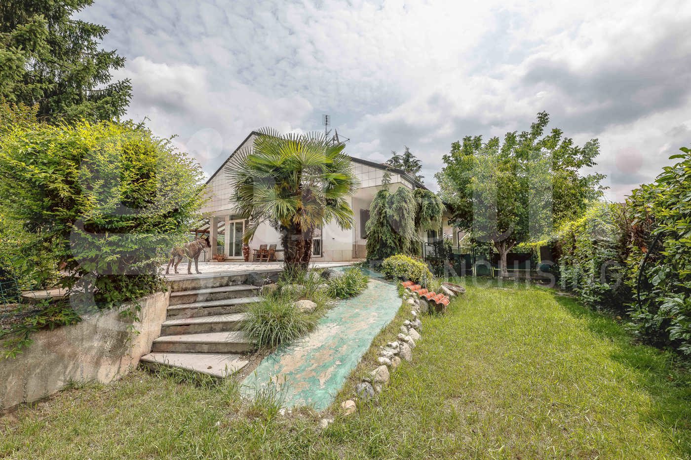 La villa libera sui quattro lati ed disposta su due livelli oltre al piano seminterrato che ospita la piscina coperta con sauna.