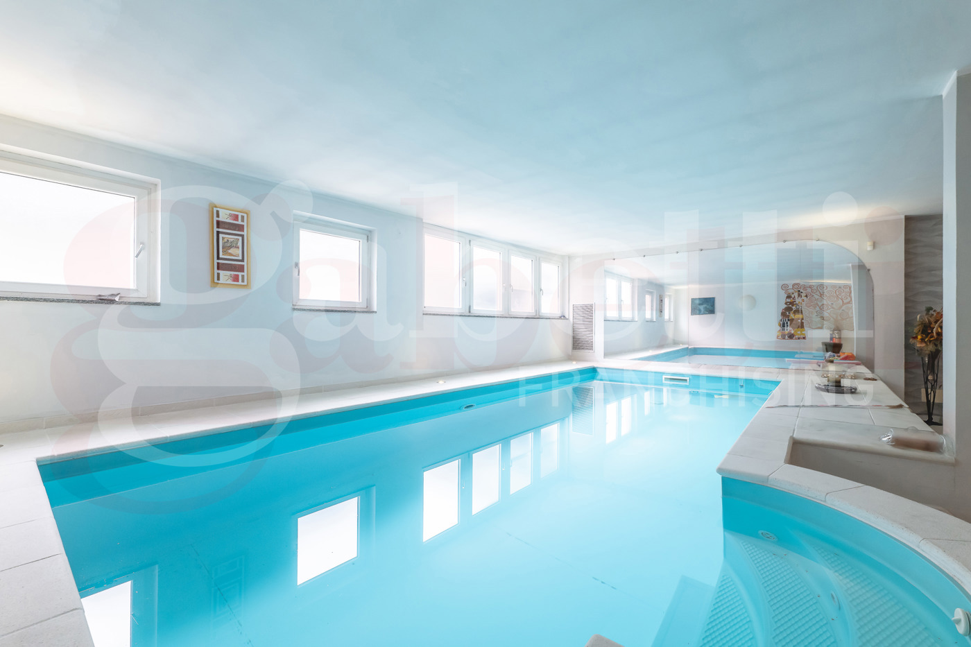 Al piano seminterrato: tavernetta di grande metratura, piscina con sauna e servizi, locali cantina, centrale termica e autorimessa doppia. Contatta l'inserzionista