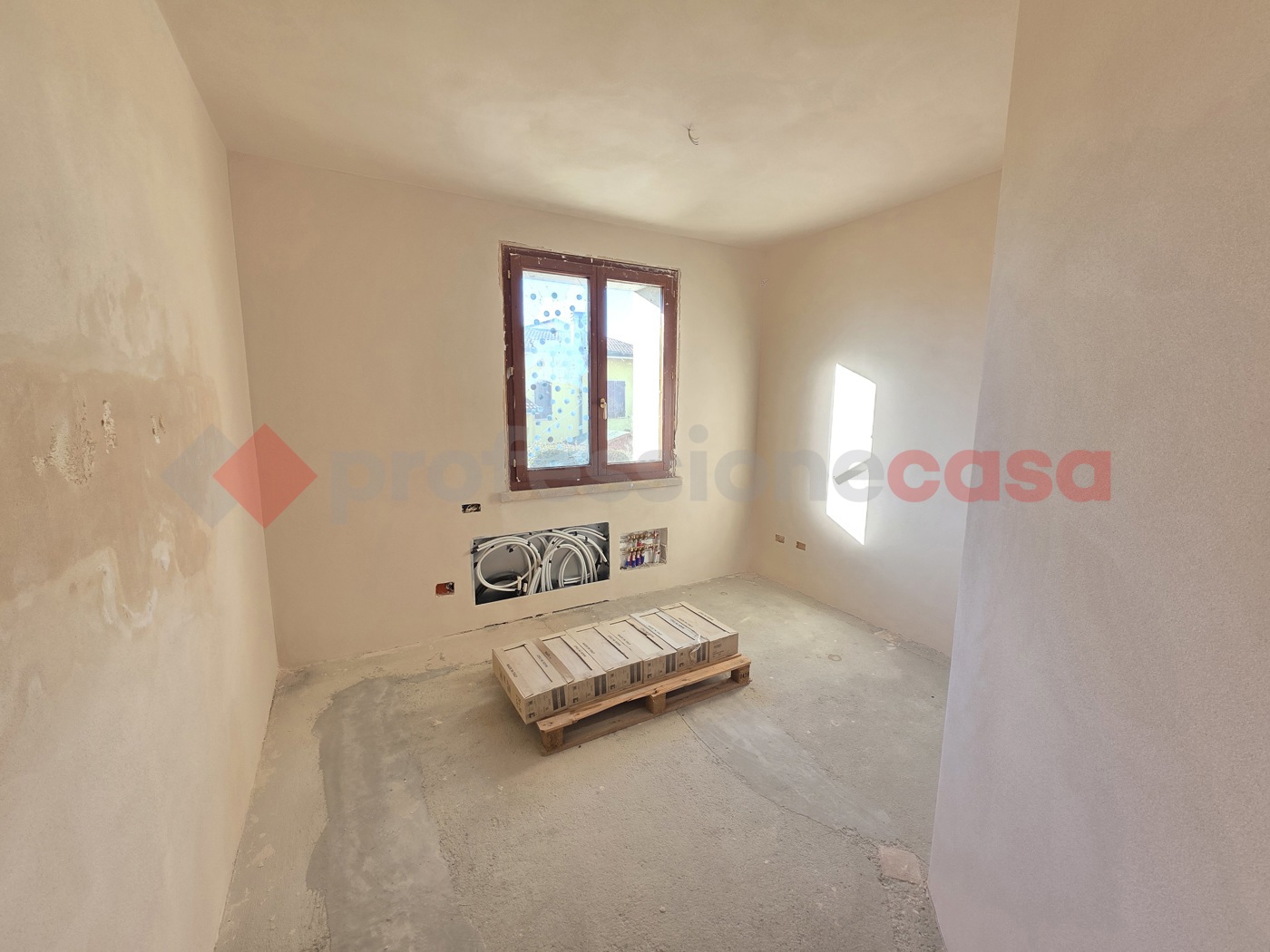 Da completare la posa dei pavimenti, linstallazione della caldaia e dei sanitari (tutto gi disponibile). Sono inoltre presenti pannelli fotovoltaici da 6 Kwp. Soluzione ideale per chi desidera personalizzare finiture e dettagli secondo il proprio gusto, in un contesto riservato e ben abitato.