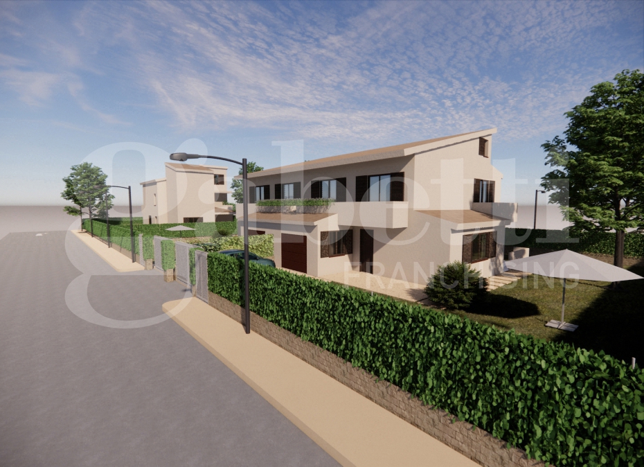 La casa si sviluppa su tre livelli con ingresso sul soggiorno di 30 mq e con finestra, disimpegno con vano scala, lavanderia con bagno, cucina abitabile con accesso alla veranda e garage singolo.