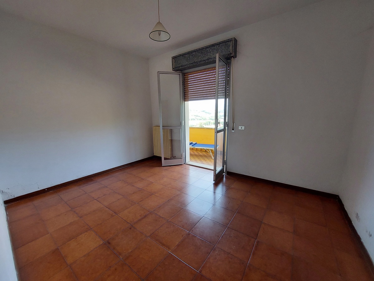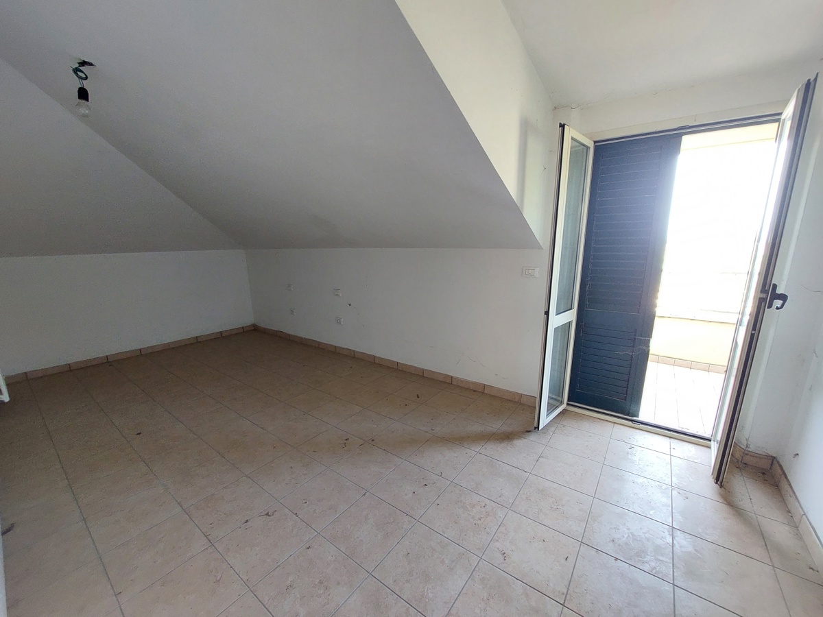 Mansarda con grande soggiorno con cucina a vista, una camera matrimoniale, una cameretta, un bagno finestrato con vasca e uno con doccia, tutto il piano circondato da balconi con vista mare e monti.