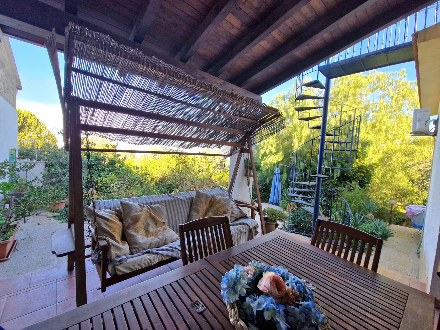 Il porticato esterno perfetto per pranzi e cene all'aperto, mentre la presenza di una stufa a pellet assicura comfort e calore durante i mesi pi freddi.
