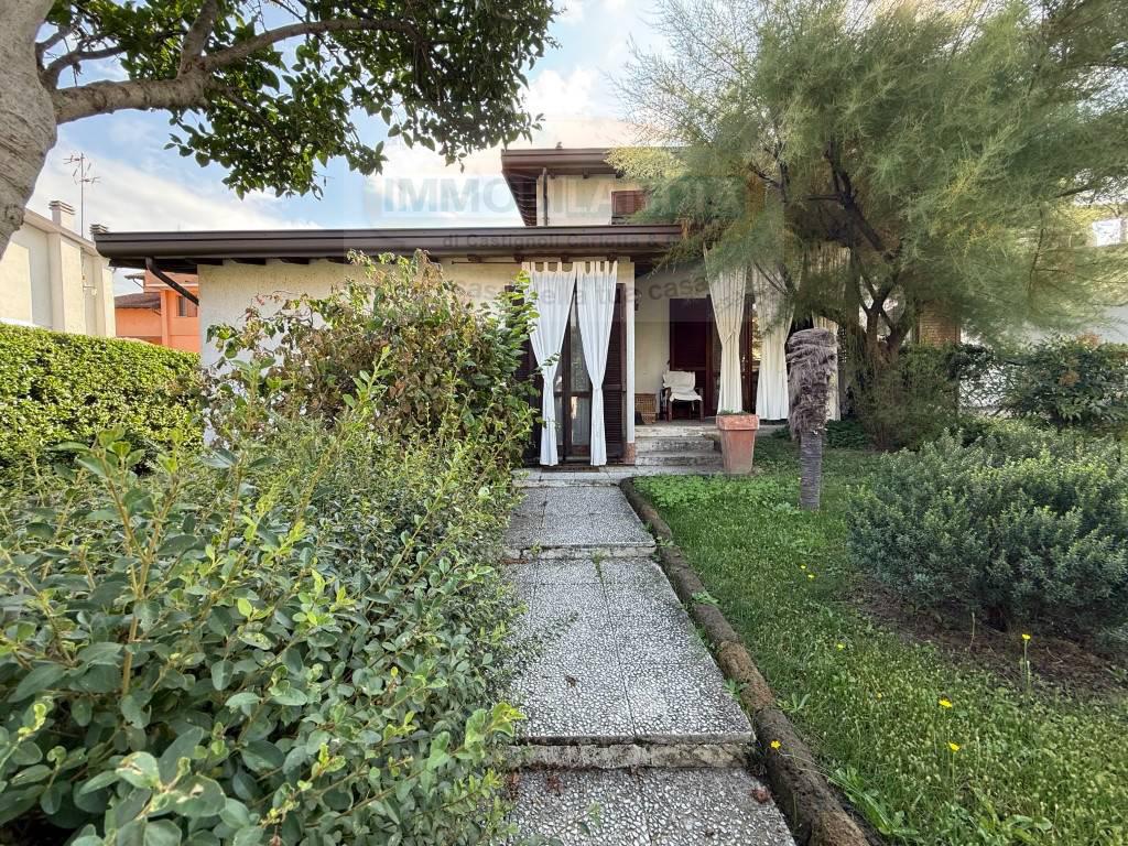 La casa cos composta: ingresso nella cucina abitabile, salone doppio con portafinestra dalla quale si pu accedere al porticato coperto ed al giardino anteriore, abbiamo poi il disimpegno che accompagna nella zona notte dove sono presenti tre camere da letto di cui una matrimoniale e due camerette singole, presente poi il bagno con vasca.