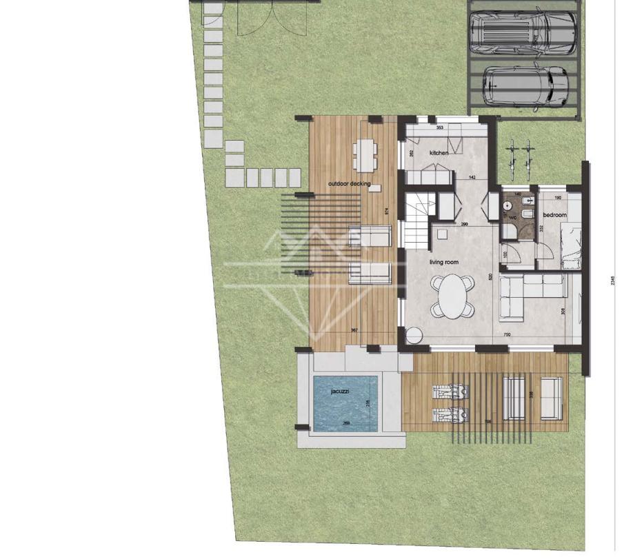 La proprietà è circondata da un giardino di circa 600 mq, ideale per creare una zona relax allaperto, dove sarà possibile godersi anche la splendida jacuzzi.