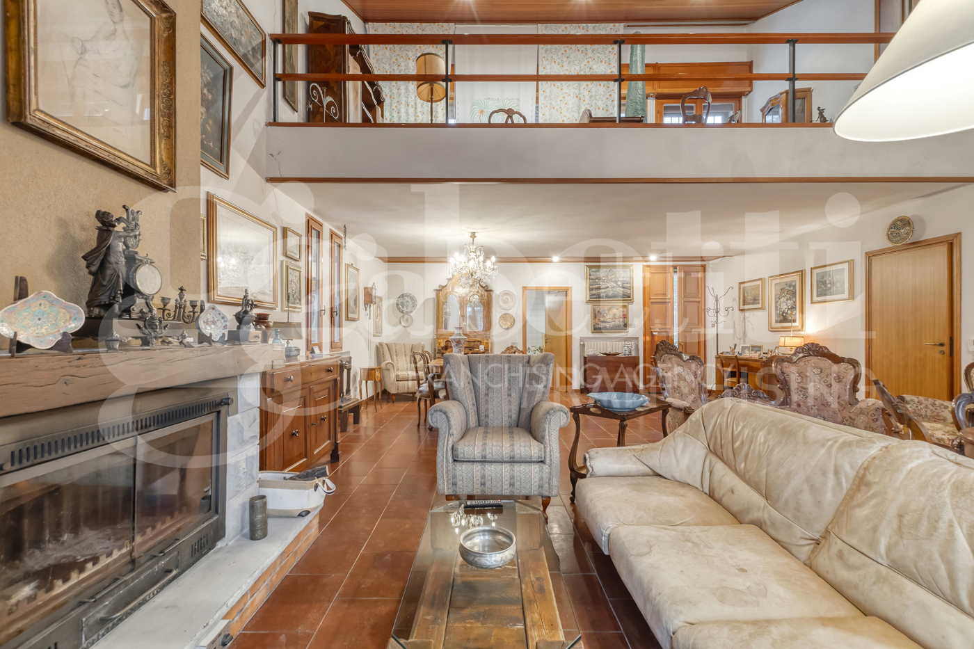 Piano interrato: Taverna con accesso indipendente Ampia cantina Lavanderia / ripostiglio Garage di 52 mq Piano terra: Ingresso su soggiorno doppio con accesso al terrazzo abitabile Suggestivo soppalco a vista che valorizza la zona giorno Cucina abitabile separata, con possibilit di abbattere i muri e ridistribuire gli spazi Bagno finestrato Due camere matrimoniali Piano primo: Soppalco adibito a zona studio con accesso al secondo terrazzo abitabile Due camere Bagno finestrato Finiture e dotazioni: Pavimenti in ceramica Parquet nelle camere Infissi in legno con inferriate Riscaldamento autonomo a radiatori La possibilit di frazionamento, gli spazi generosi, il parco privato e i terrazzi abitabili rendono questa villa una soluzione rara e versatile, perfetta per famiglie numerose o per chi cerca indipendenza e flessibilit abitativa.