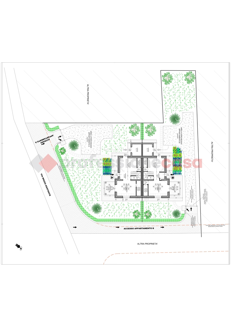 Le propriet avranno accesso indipendente con garage e giardino privato di circa 400mq possibile anche la realizzazione di una piscina di modeste dimensioni.