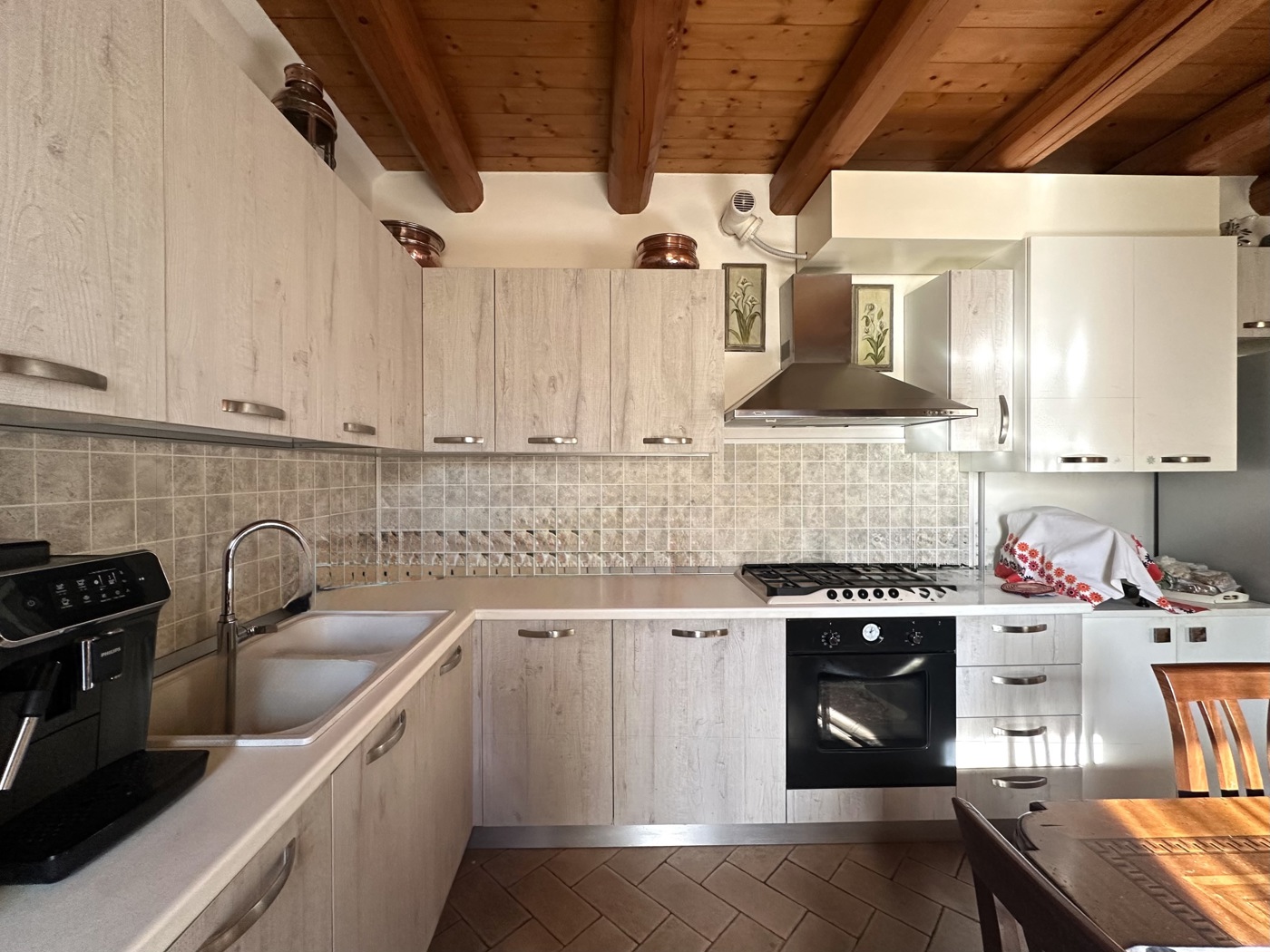 Al piano terra si trova un luminoso open space con cucina e soggiorno in un unico ambiente, oltre a un bagno con antibagno.