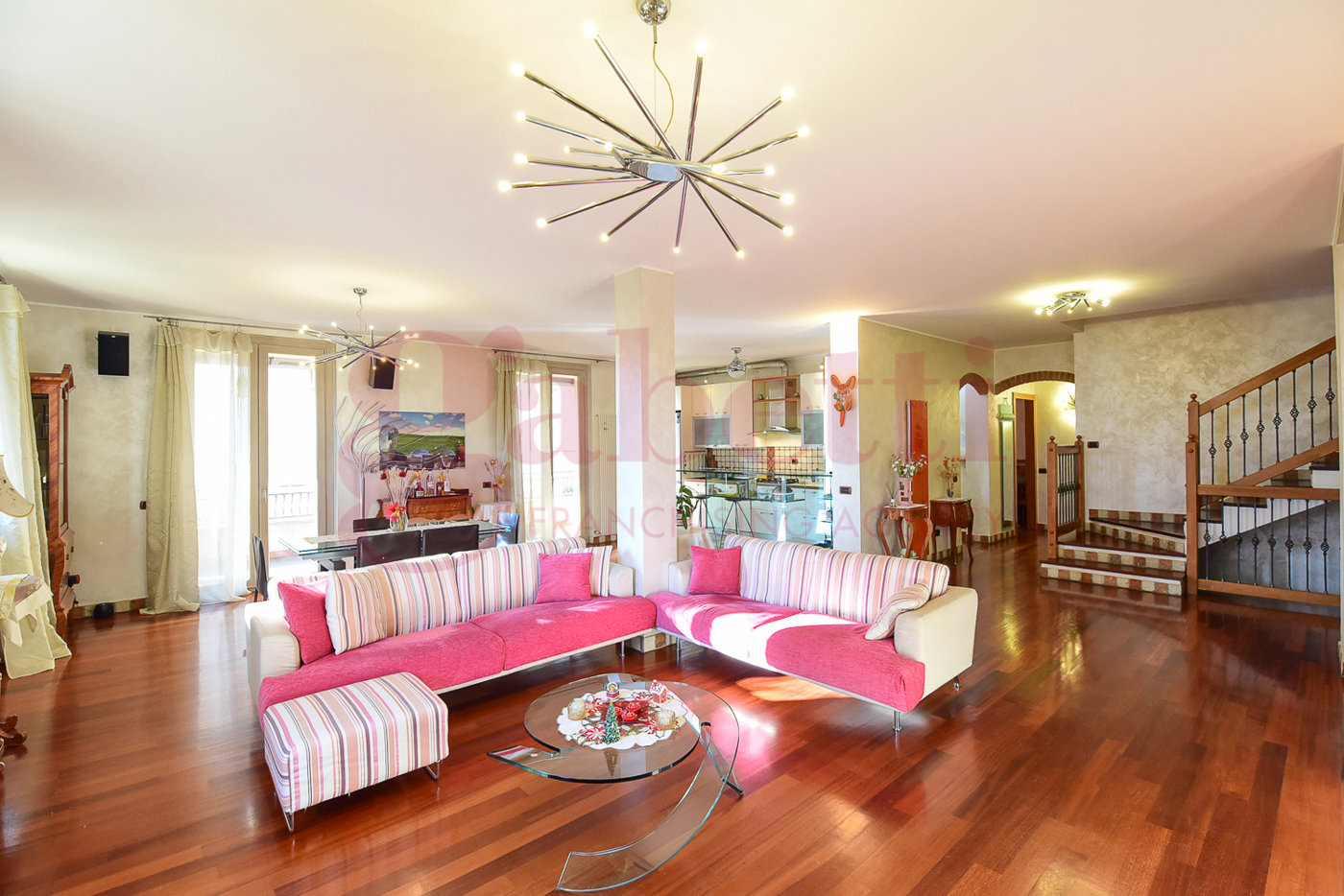 Comoda scala di collegamento che conduce al piano primo mansardato dove troviamo un ampio locale open space con un ulteriore bagno e una cameretta con accesso al terrazzo.