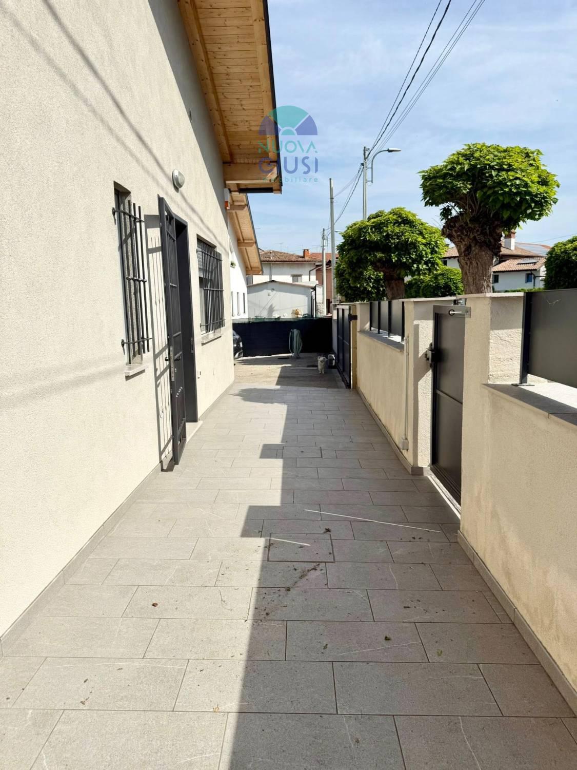 In zona servita, bellissima e rifinita casa accostata del 2020, svolta su un unico piano, composta da stupenda zona giorno con soggiorno e cucina abitabile, dispensa/lavanderia, corridoio, due spaziose camere (una con particolare cabina armadio), due bagni e grande soffitta (ideale per terza camera) con scala retrattile elettrica.