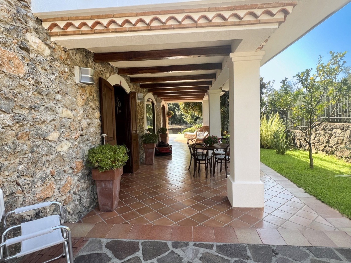 La villa, curata nei minimi dettagli, si sviluppa su tre livelli con ampi terrazzi panoramici, internamente si compone come segue: ***.*******.** dependance autonoma: soggiorno, camera da letto e bagno; P.T.: ampio soggiorno-pranzo che affaccia sul terrazzo-portico ideale per pranzare all'aperto, cucina, camera da letto e bagno; P.P.: 2 camere da letto matrimoniali e bagno che affacciano sull'ampio terrazzo da cui si gode una splendida vista mare. Il giardino, di complessivi mq.500, si presenta sistemato a prato con particolare bers in muratura con panche e camino che affacciano sulla graziosa vasca idromassaggio, il tutto circondato da piante ornamentali, piccolo locale ripostiglio e adiacente viale di ingresso in selciato di pietra adibito a parcheggio. Contatta l'inserzionista