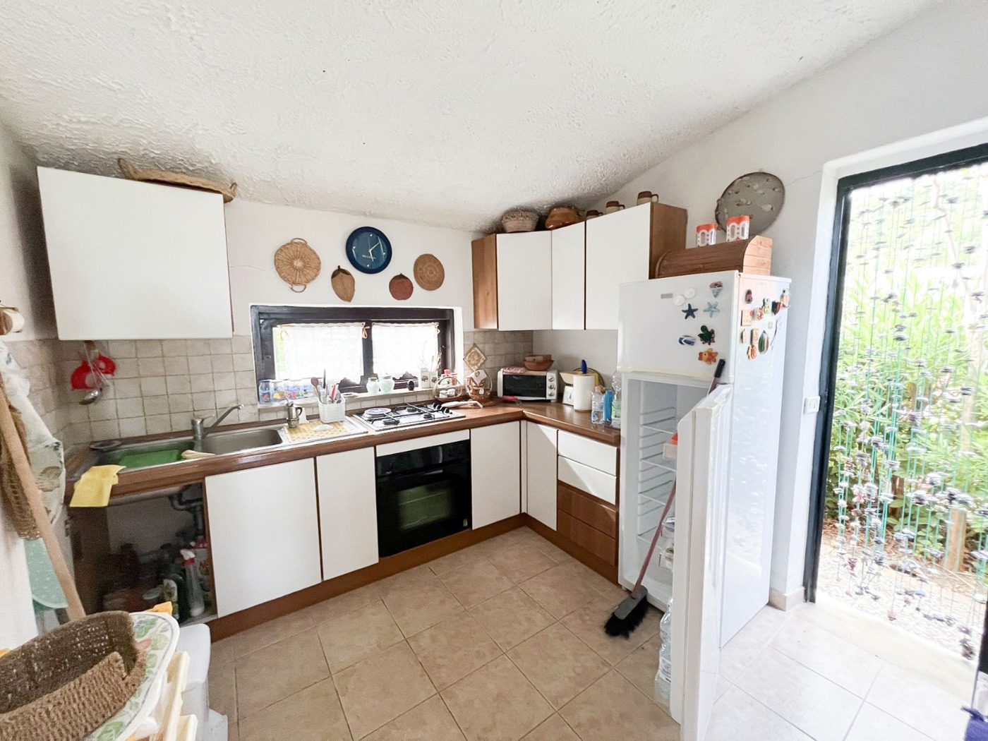 SCARIO: A pochi metri dal mare, in contesto residenziale, graziosa villa bifamiliare in buone condizioni con camino e climatizzatori nonch gradevole giardino panoramico, composta al piano terra da ampio soggiorno che affaccia su terrazzo a livello con pergolato, ideale per i momenti di relax, cucina a vista, camera da letto e bagno; una scala interna conduce al piano primo costituito da due camere da letto, bagno e terrazzino vista mare. Giardino attrezzato a verde con zona doccia-lavabo e barbecue.