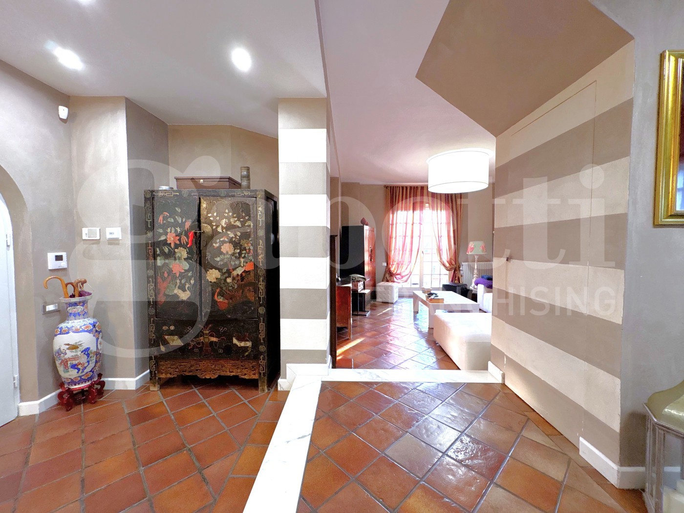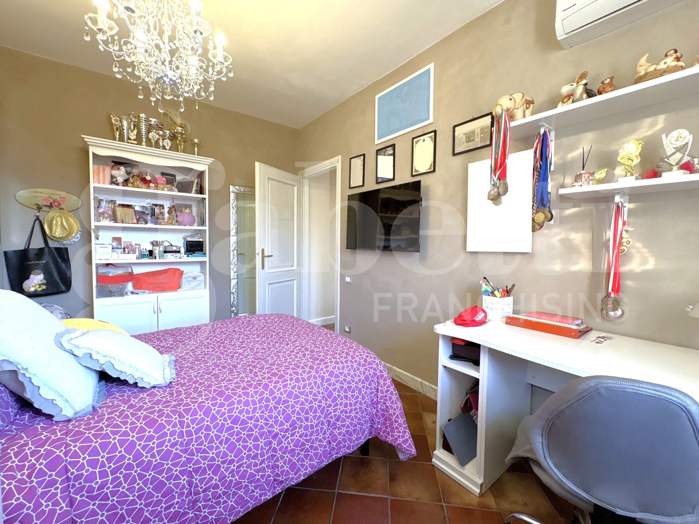 Il piano superiore ospita una spaziosa suite matrimoniale dotata di cabina armadio, accesso al terrazzo e bagno privato finestrato con vasca idromassaggio.