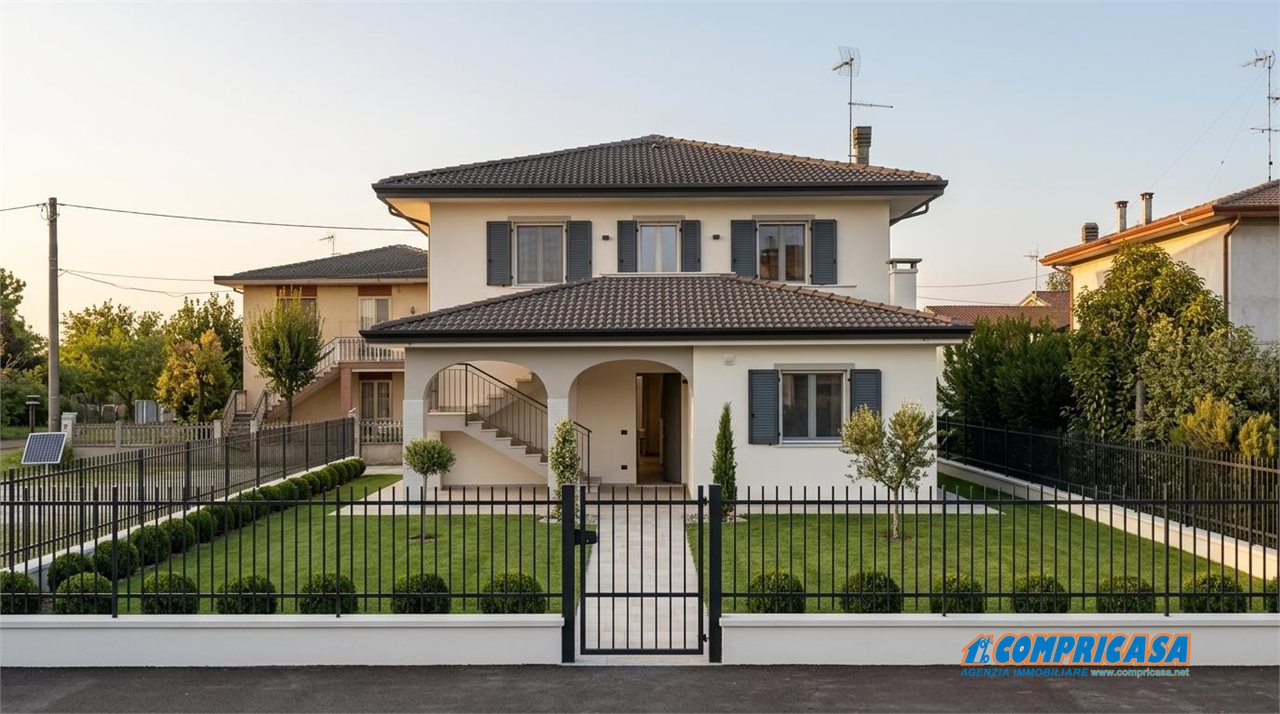 VENDESI: a Megliadino San Fidenzio comoda a tutti i servizi, villa indipendente con giardino.\nL'immobile attualmente è diviso in due appartamenti entrambi con ingresso indipendente.\nL'appartamento al piano terra di 120 mq circa è composto da: cucina abitabile, salotto, un bagno finestrato, uno studio, due camere matrimoniali, ripostiglio, portico e garage.\nE' stato completamente ristrutturato con pannelli fotovoltaici e batteria di accumulo, riscaldamento a pavimento, caldaia a condensazione, condizionatore inverter, cappotto.\nAl piano superiore l'altro appartamento di 100 mq circa: cucina/soggiorno e balcone, salotto, tre camere da letto, bagno finestrato e poggiolo.\nBen tenuto e con l' impianto a riscaldamento termosifoni.\nA completare la proprietà degli annessi e un terreno agricolo retrostante.\***.*******.** B30M\nInfo: Compricasa tel. 0429.805600\nemail: *******@*******\n - Maggiori Dettagli: Insonorizzazione, Cucina Abitabile, Porta blindata, Climatizzato Contatta l'inserzionista