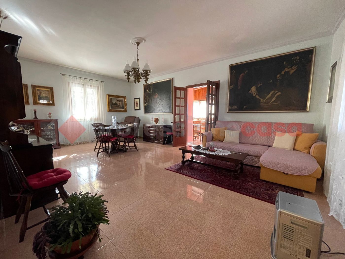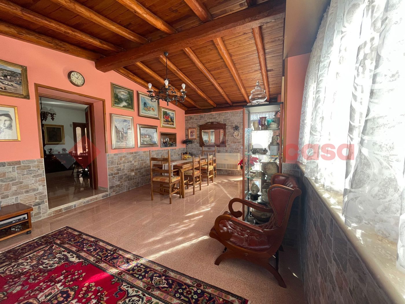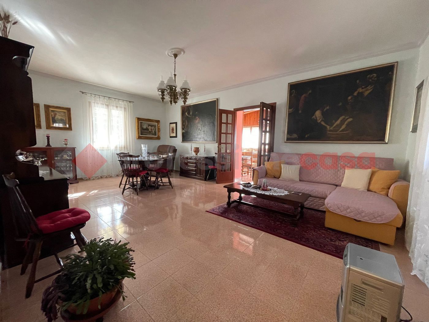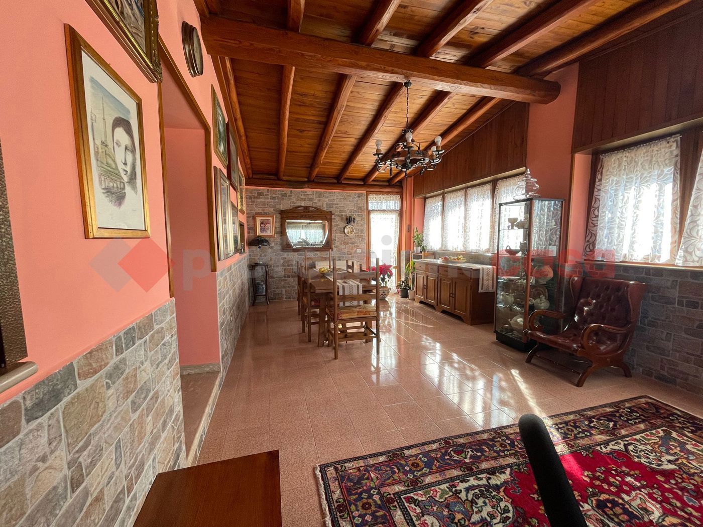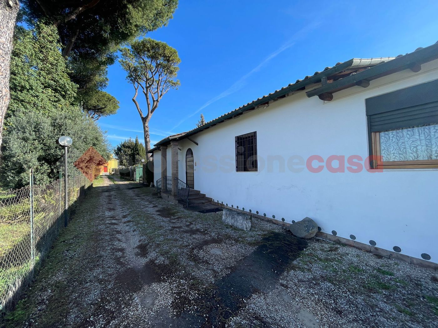 Roma - Zona Vermicino - villa singola unico livello: ingresso, cucina abitabile, soggiorno, salone doppio, tre camere, doppi servizi e ripostiglio.