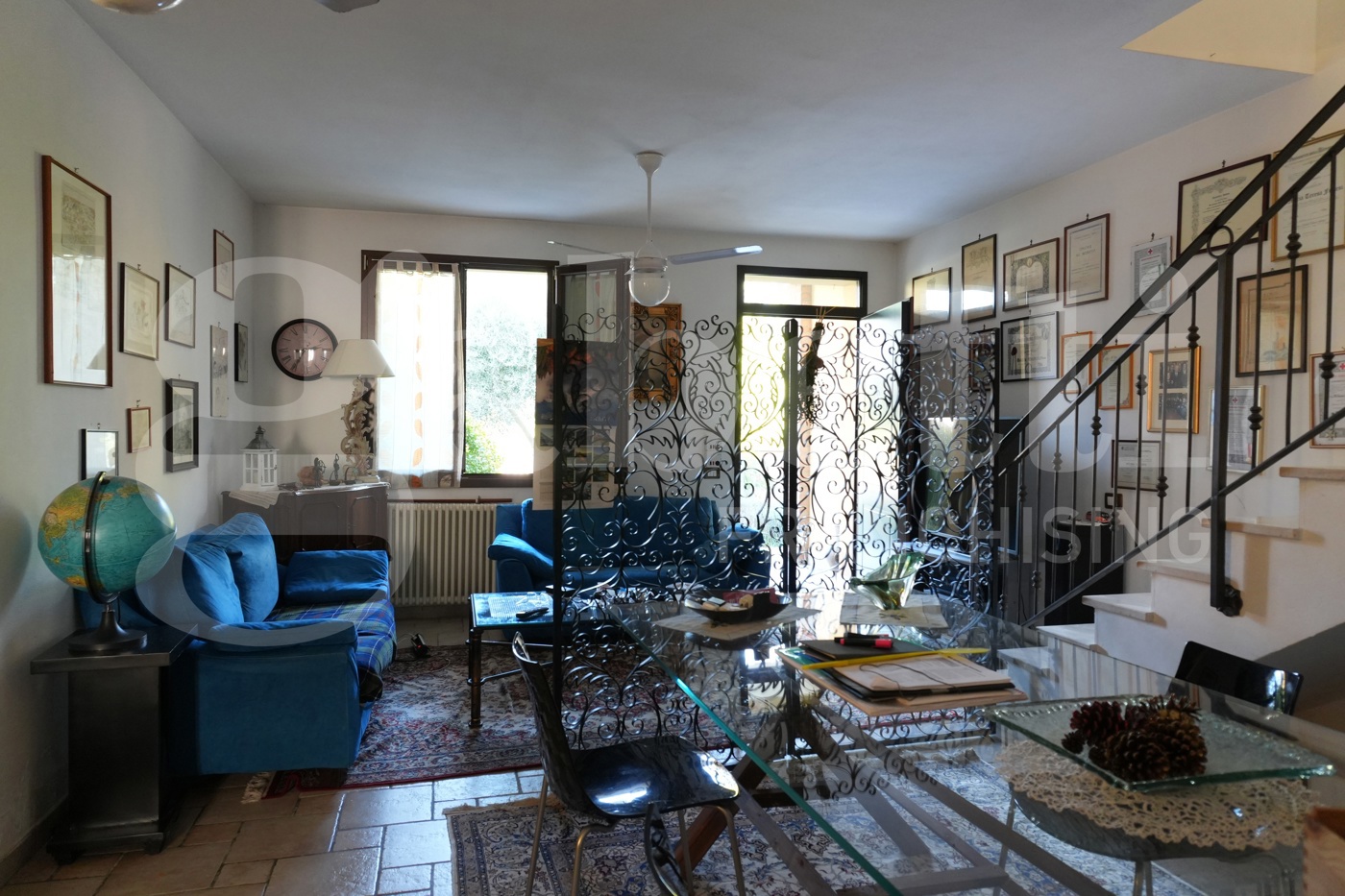 Al piano terra troviamo un ampio soggiorno, una cucina abitabile con accesso al cortile posto sul retro, un bagno finestrato con antibagno e garage.
