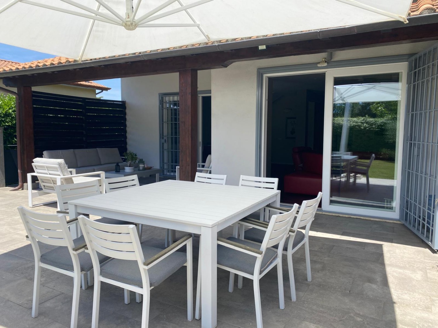 Portico e giardino di circa 300 mq in parte pavimentato.