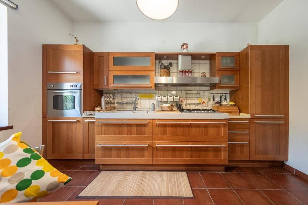 Labitazione, di circa 370 mq distribuiti su tre livelli, si presenta in condizioni impeccabili ed completamente arredata con gusto essenziale ed elegante: mobili e divani di pregio, pavimentazione interamente in parquet e una scenografica scala in legno che collega i piani abitativi, conferendo carattere e continuit agli spazi.