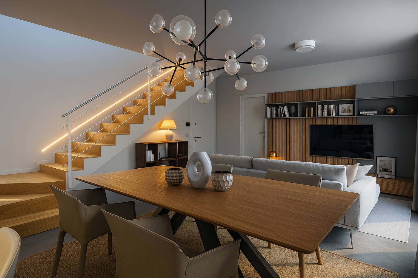 Inserita in un contesto privato, labitazione si sviluppa su due livelli ed circondata da un ampio giardino esclusivo di 147 mq, fruibile attraverso una grande vetrata scorrevole che valorizza la luminosit e crea continuit tra gli spazi interni ed esterni.