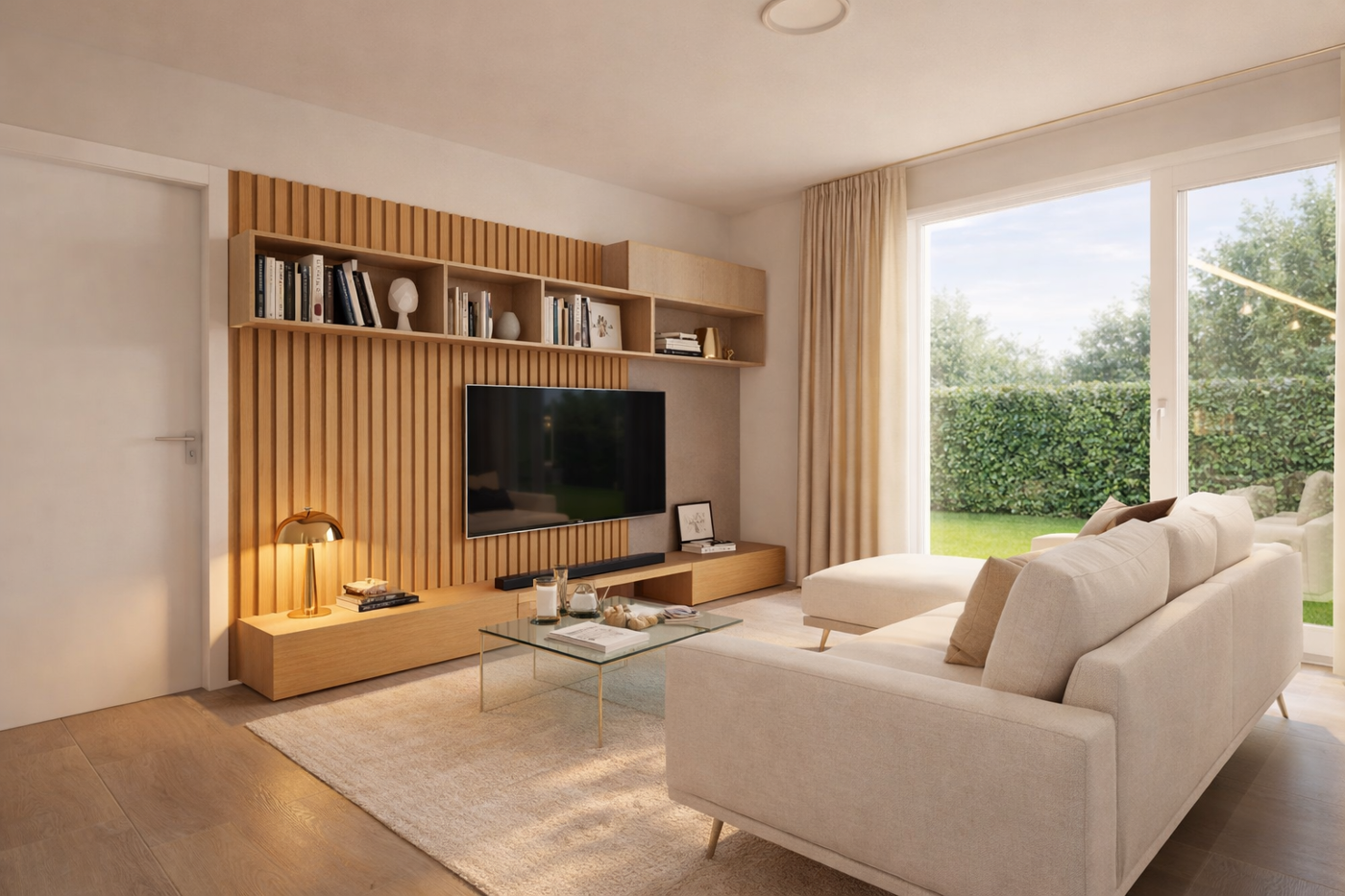 La grande vetrata scorrevole del soggiorno dona straordinaria luminosit agli ambienti e crea una naturale continuit tra interno ed esterno, esaltando lo spazio e il comfort abitativo.