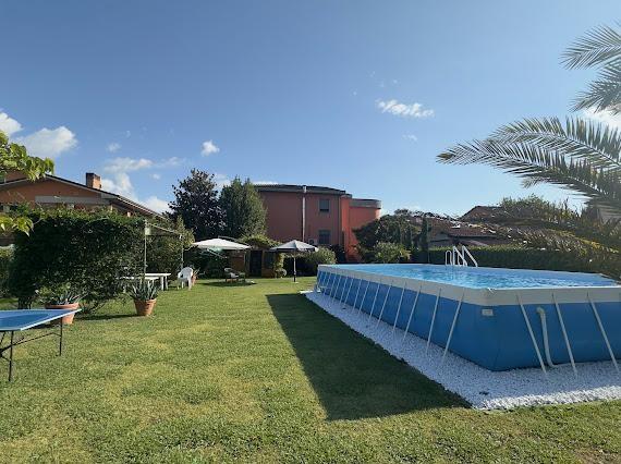 L immobile è corredato da resede privata pavimentata per i posti auto e con pergolato oltre a circa 900 mq di giardino privato tutto recintato e con possibilità di un ulteriore accesso carrabile.