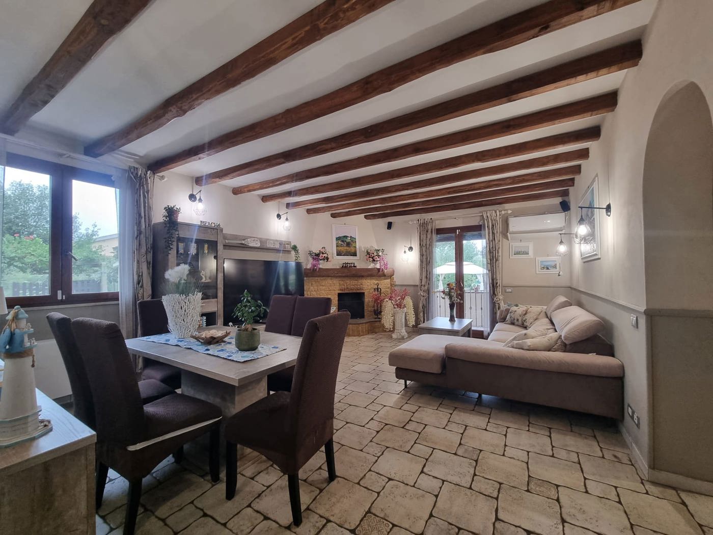 Allesterno, una meravigliosa veranda in legno di 80 mq avvolge due lati della casa. A completare la propriet, una dependance di 20 mq adibita a cucina/lavanderia/fitness, un garage di 60 mq Il giardino, curatissimo e ricco di spazi vivibili, ospita una piscina fuori terra, perfetta per godere appieno della bella stagione in totale relax.