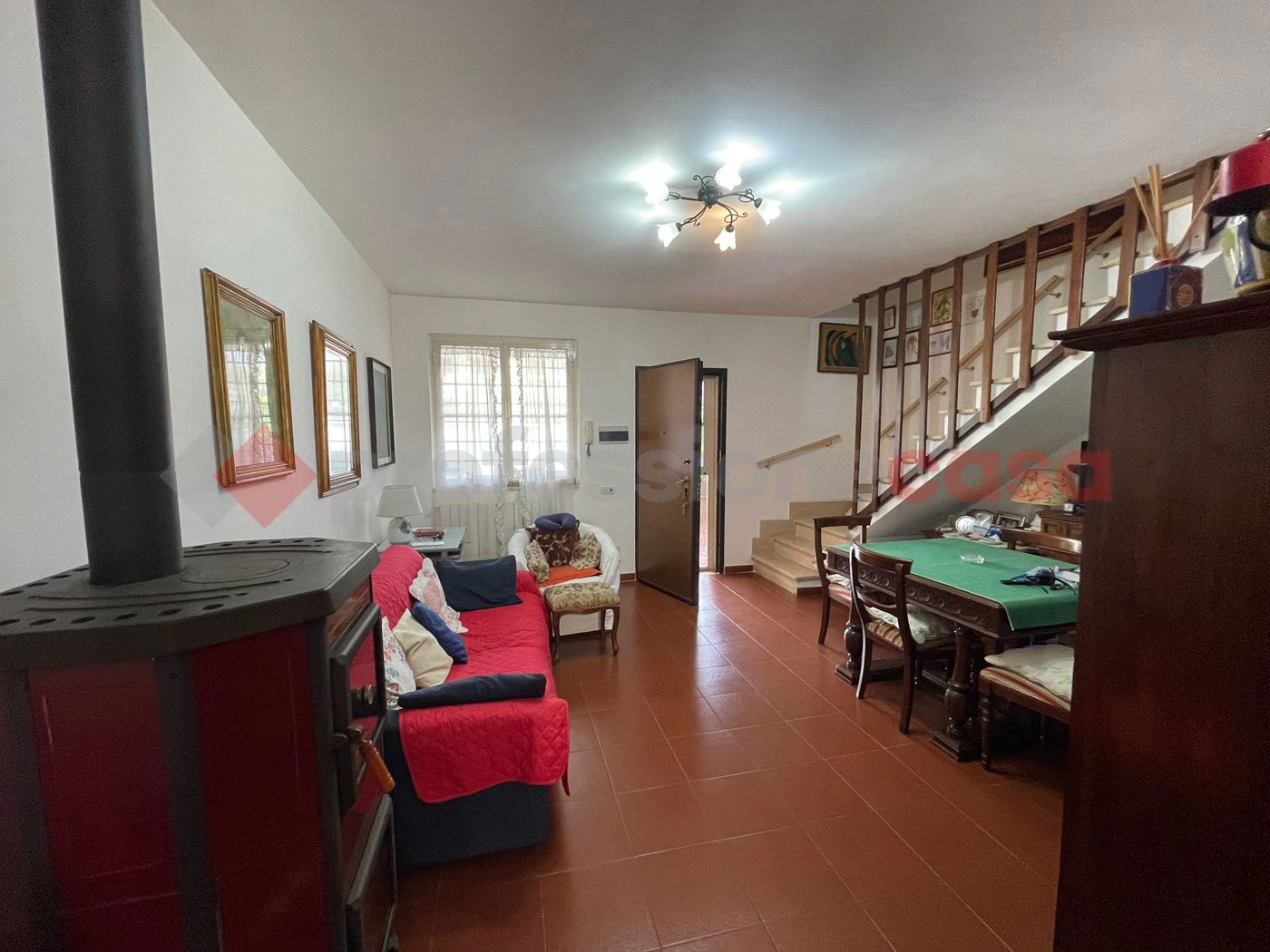Colle Romito - Villa a schiera centrale bilivello: soggiorno, cucina abitabile a vista, due camere, disimpegno, doppi servizi e balcone.