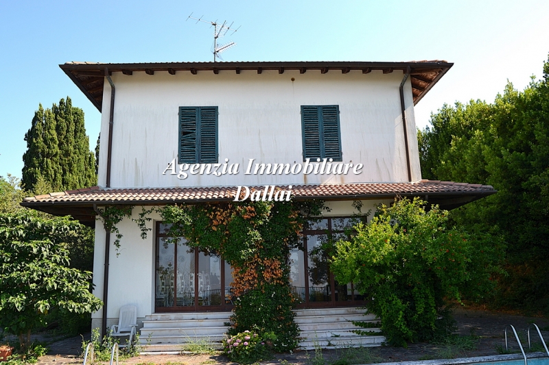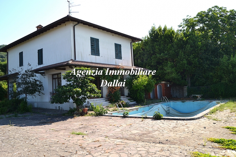 Barberino di Mugello (Santa Lucia) - In posizione panoramica, vicino all'uscita A/1 Firenzuola - Mugello, luminosa villa (200 mq) disposta su 2 livelli: al piano terra ingresso dal porticato, salone doppio con camino, cucina, ampio servizio, studio (o camerina) ed un ulteriore salone doppio verandato con affaccio sulla piscina riscaldata (11x6); salendo al primo piano troviamo 5 camere e doppi servizi; salendo ancora abbiamo la grande soffitta.