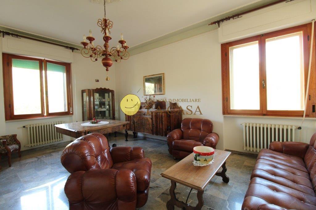 E' composta da 10 vani: con 2 cucine abitabili, 2 soggiorni doppi, 5 camere, 4 bagni, garage doppio di 40 mq. Cantina, ampio parcheggio interno.