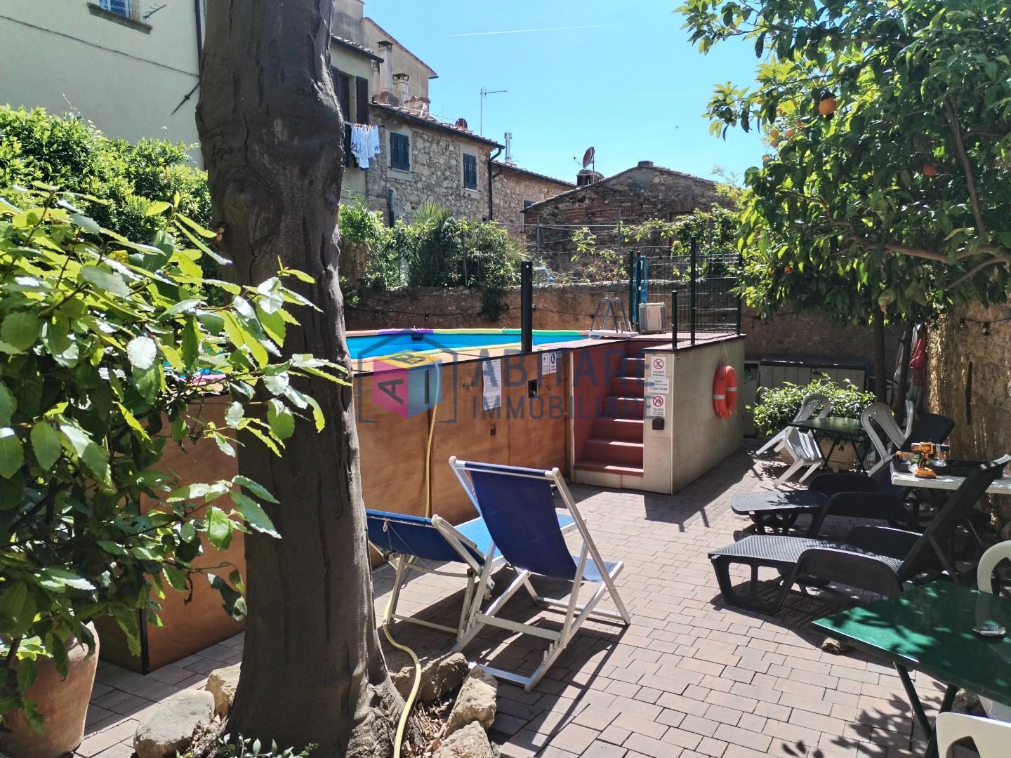 La piscina, incorniciata dal giardino e dalle antiche mura, è il cuore della dimora: unoasi di relax dove ammirare i tramonti più suggestivi della Toscana.