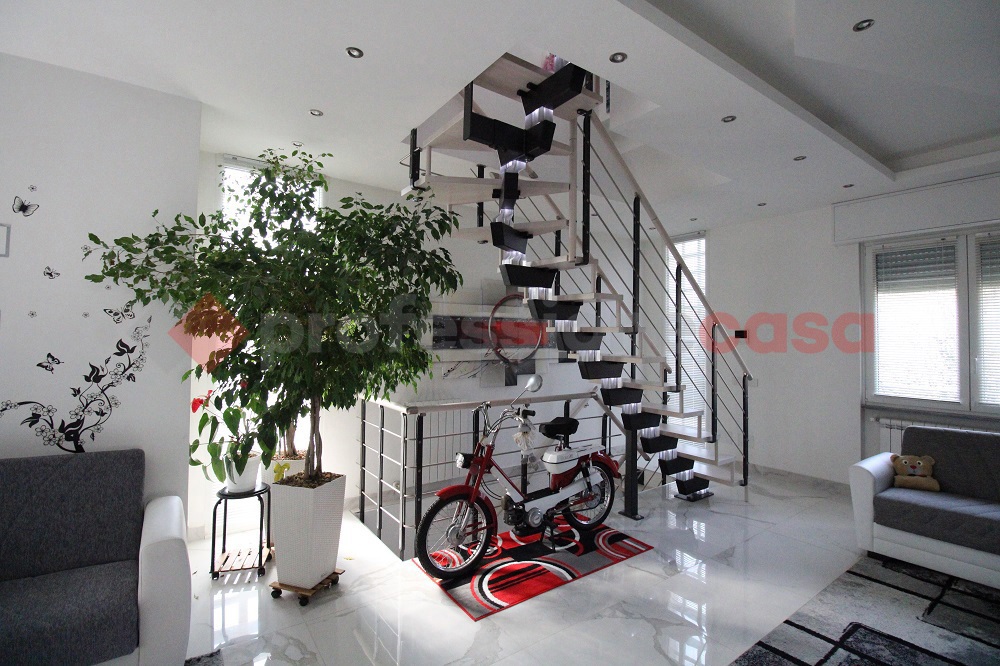 Aria condizionata caldo/freddo, infissi PVC doppio vetro con tapparelle motorizzate, allarme, videocitofono per ogni piano.