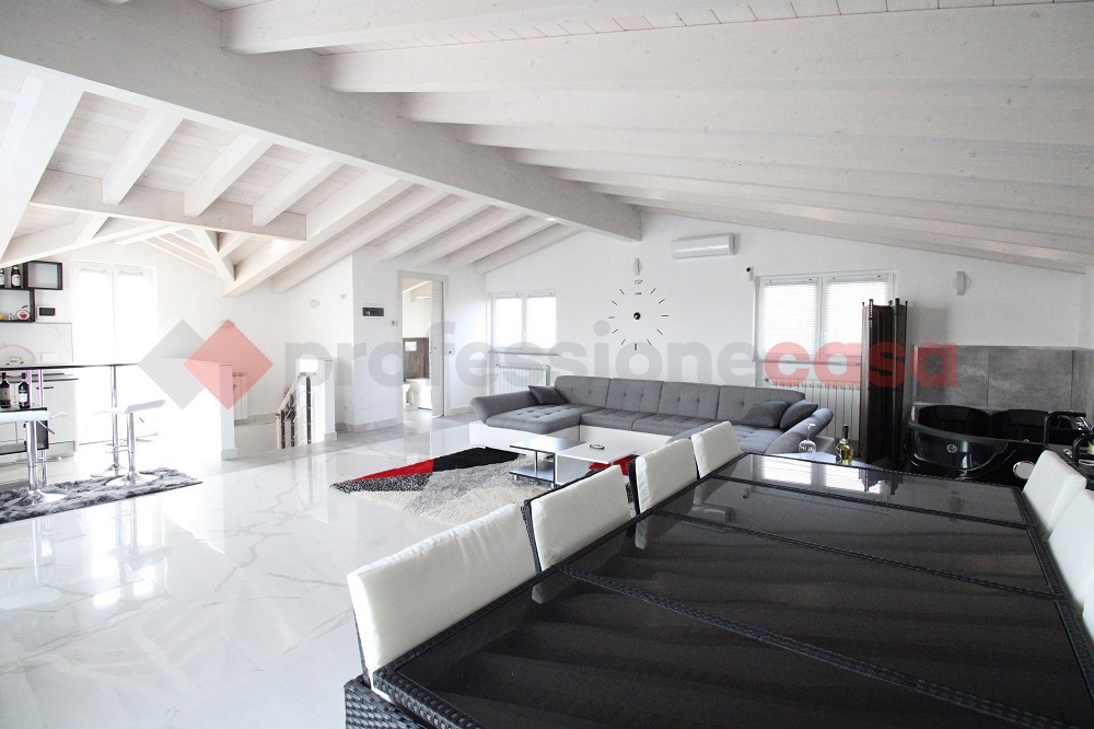 - piano sottotetto (70mq): ambiente unico con cucina a vista, bagno e terrazzo di 50mq. Tutti i livelli sono collegati fra loro da scala interna.