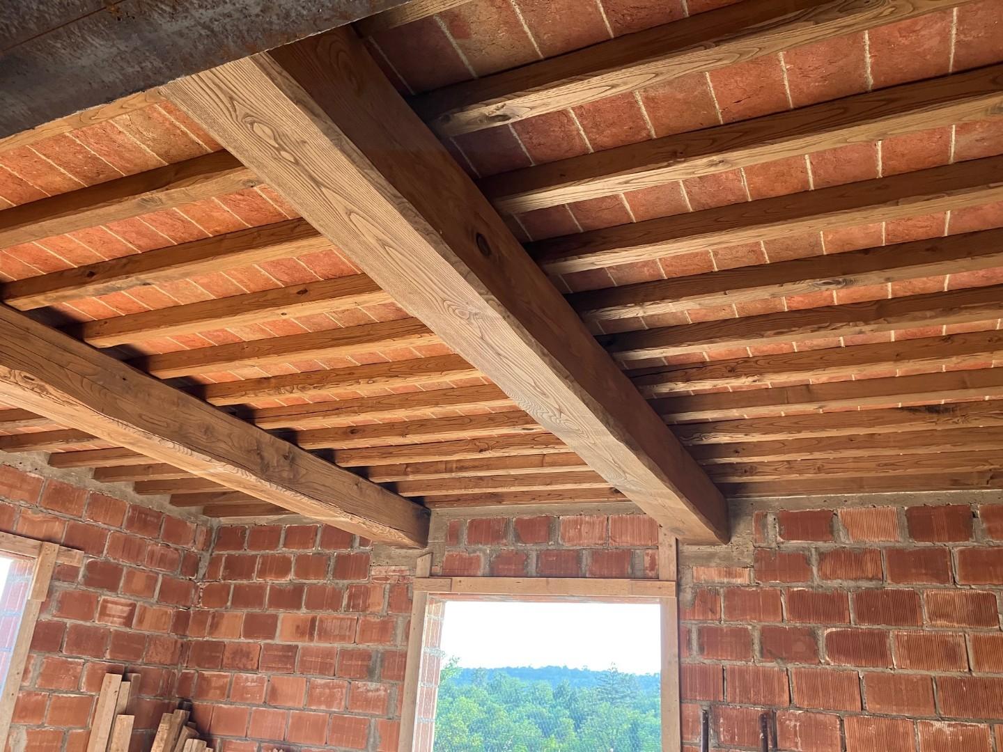 La villa permette di realizzare due appartamenti, con tutti i solai in travi e travicelli di castagno con mezzane e con il permesso di poter essere rivestita in pietra: piano terra mq 140 loggia piano terra mq 13 piano primo mq 52 sotto tetto piano primi mq 45 totali superfici mq 250 possibilita' di costruire ulteriore annesso agricolo di circa mq 45 e piscina posizione panoramica con terreno di pertinenziale di mq 4.300 La vista panoramica permette di godere della loggia esterna e del terreno che la circonda; ulteriore terreno di 21.000 mq con laghetto, può essere acquistato a parte.