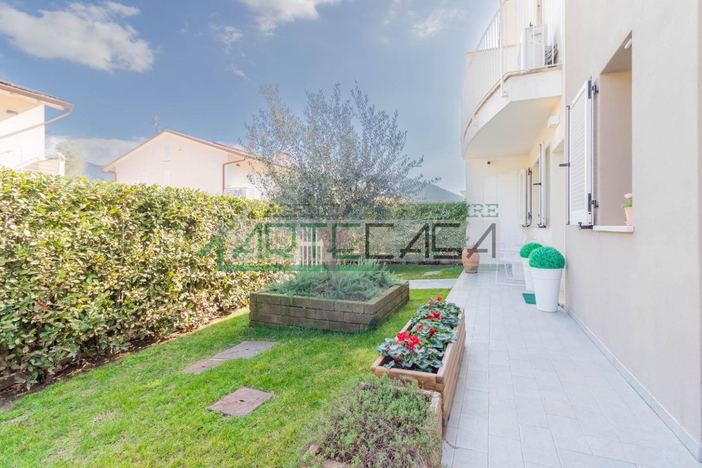 Laccesso alla villetta avviene tramite un CURATO GIARDINO ANGOLARE in gran parte pavimentato, rendendolo più fruibile anche nelle stagioni più piovose, ottimamente attrezzato con casina di legno e gazebo.