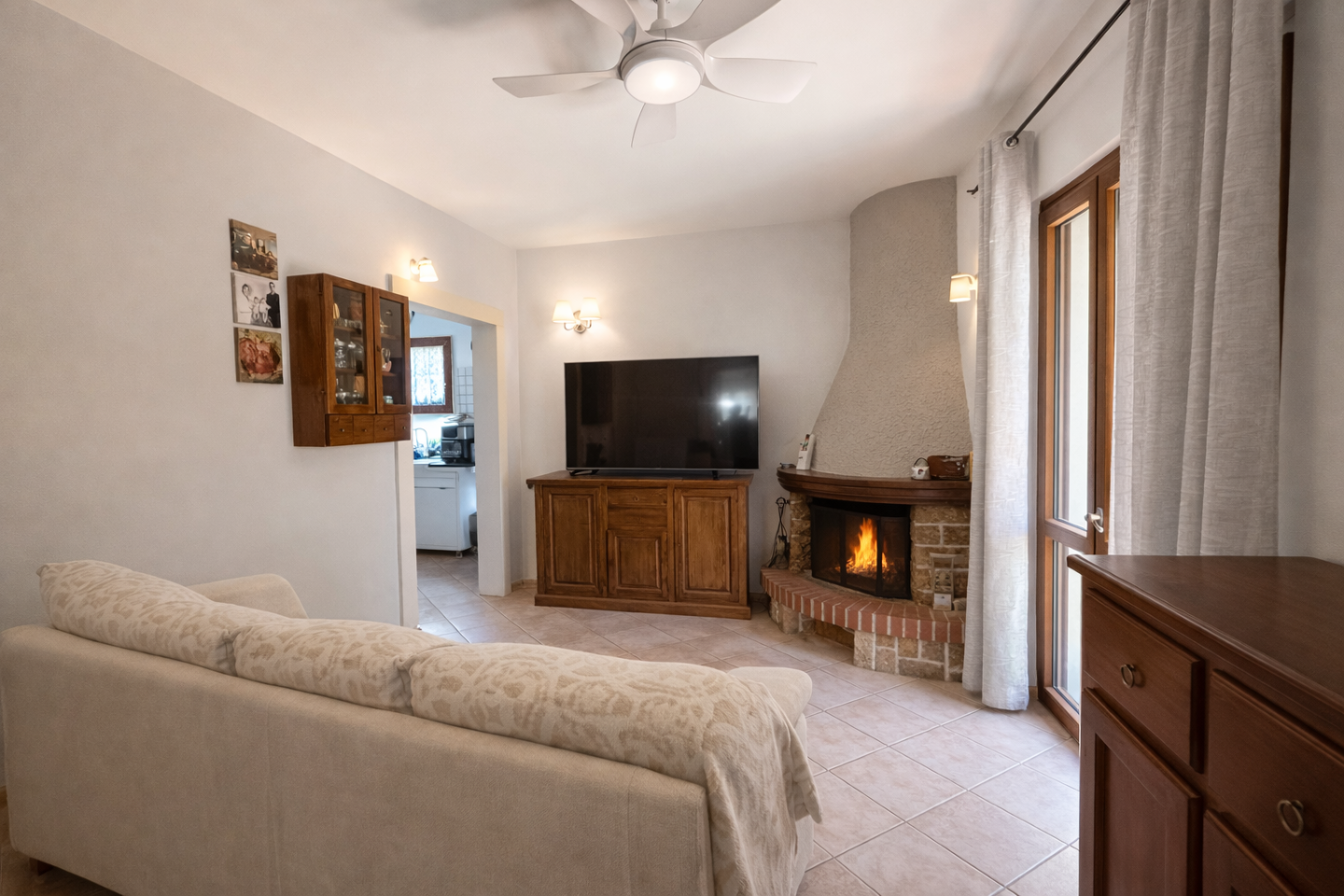 Lingresso, attraverso il resede e il giardino esclusivo, accompagna in un ambiente accogliente e ben distribuito: il grande disimpegno introduce al salone, luminoso e conviviale, affiancato da un tinello con camino, perfetto per vivere momenti autentici in famiglia.