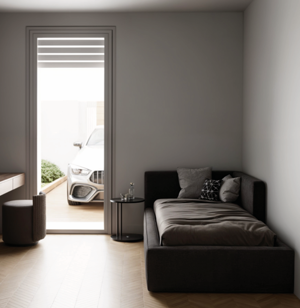 La villetta si sviluppa su un unico livello con una superfice ben distribuita, l'ingresso si apre su un ampio openspace che integra armoniosamente zona living e cucina a vista, valorizzato da grandi aperture che assicurano luce naturale durante tutto l'arco della giornata.