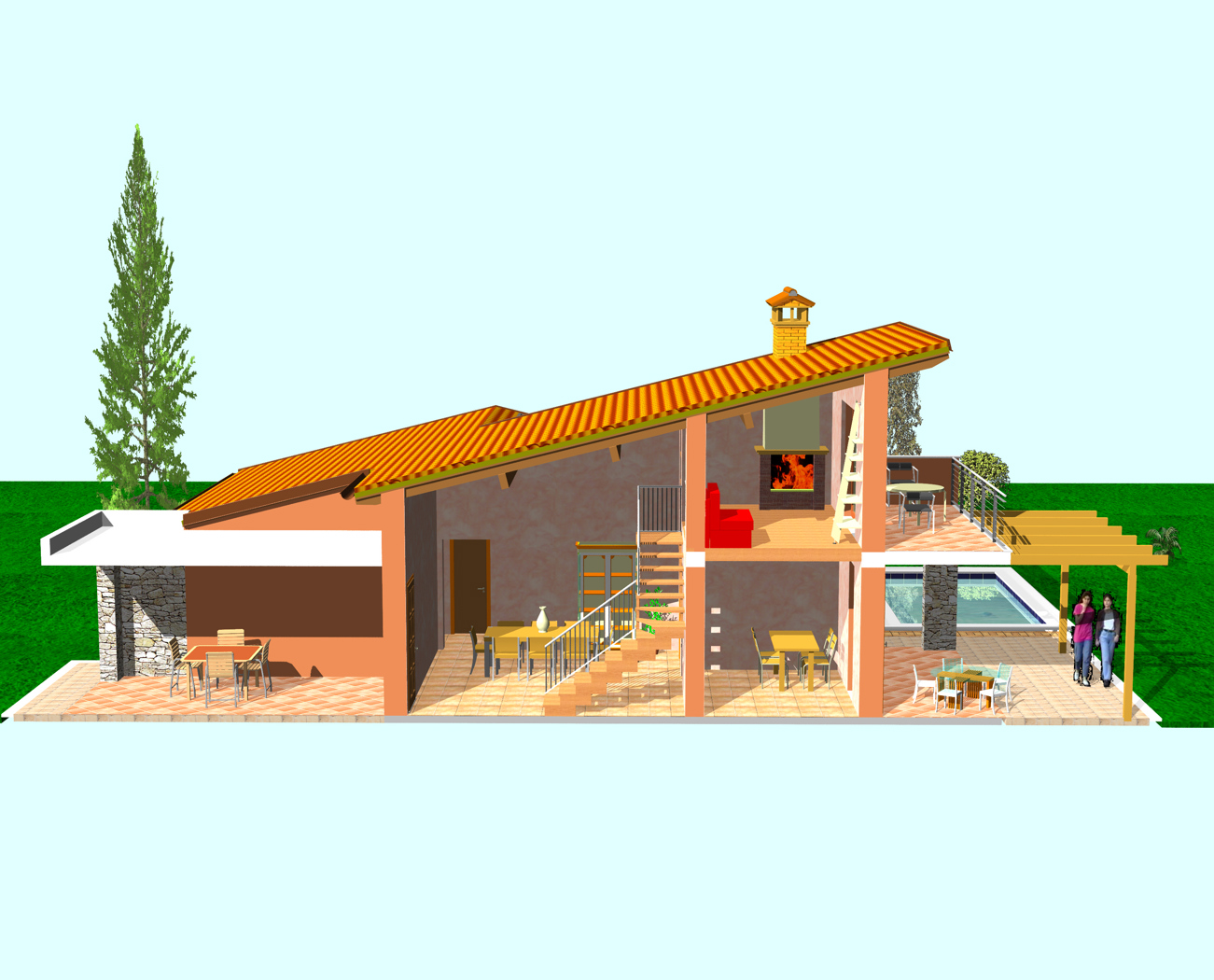 Tutte le abitazioni verranno coperte con tetti a falde coibentati ed impermeabilizzati con tegole in laterizio tipo portoghese invecchiate artificialmente con comignolo in cotto e saranno dotate di un impianto fotovoltaico della potenza di 1,5 KW richiesto dalla normativa.
