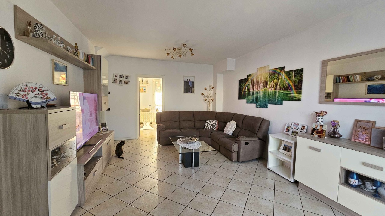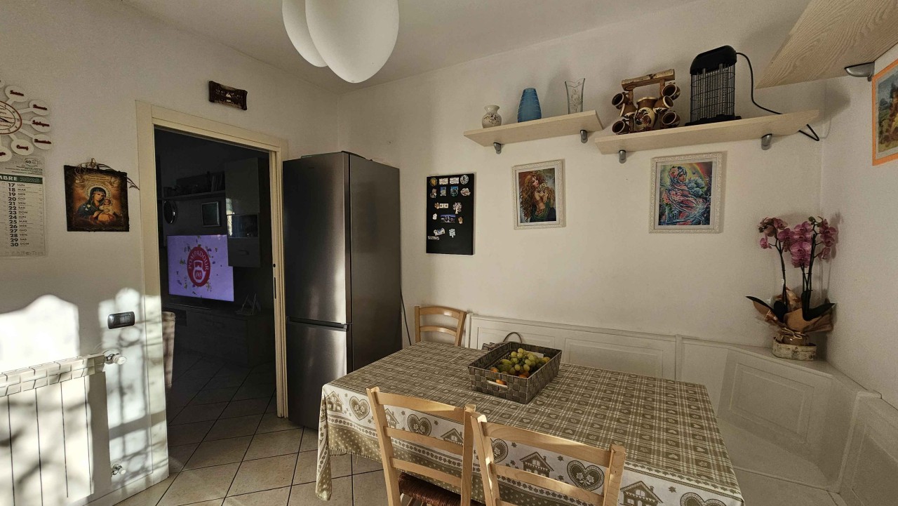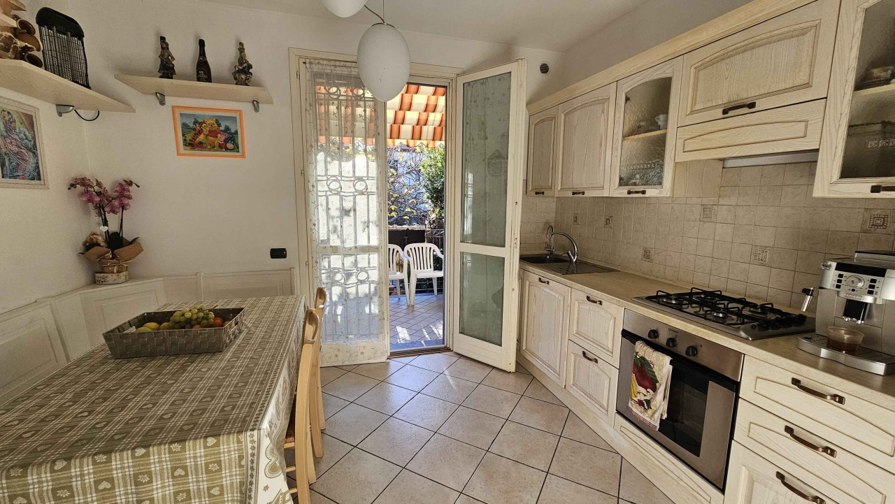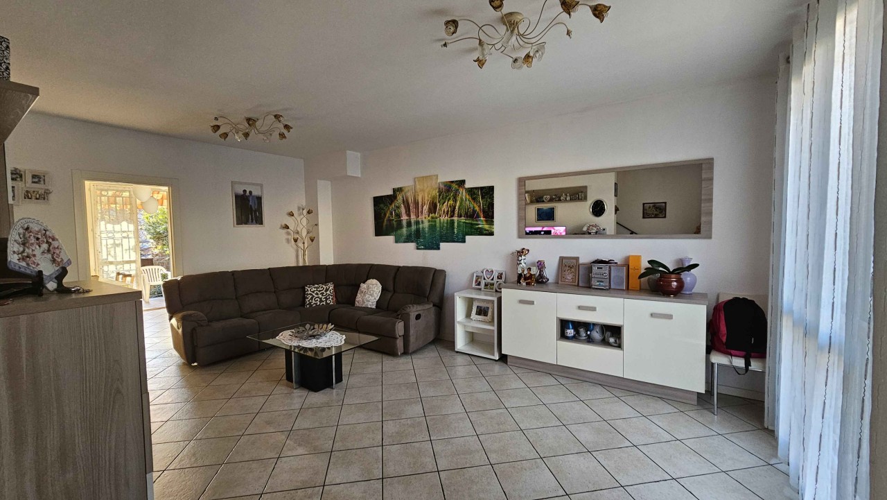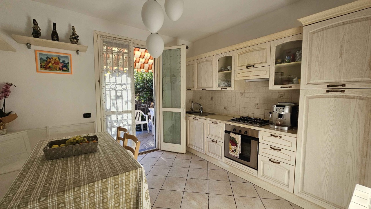 Al piano rialzato, un ampia terrazza accoglie l ingresso, che si apre su una spaziosa sala e una cucina abitabile con un altra terrazza, ideale per pranzi all aperto e momenti di relax, completata da un pratico bagno di servizio.