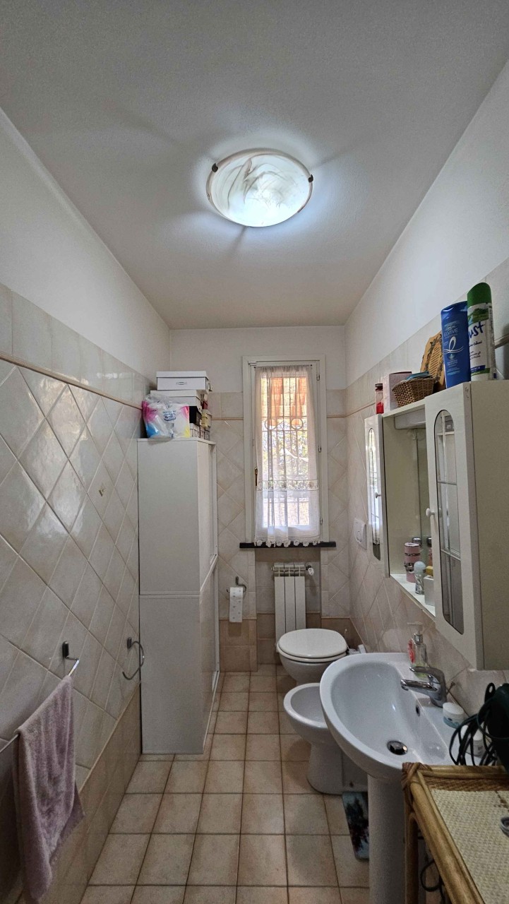 La zona notte al primo piano offre tre camere una matrimoniale, una doppia e una singola e due bagni (uno con vasca e uno con doccia). Al piano seminterrato, un vano può essere adibito a cucina con canna fumaria, mentre un altro spazio funzionale funge da ripostiglio o lavanderia, con predisposizione per un ulteriore bagno.