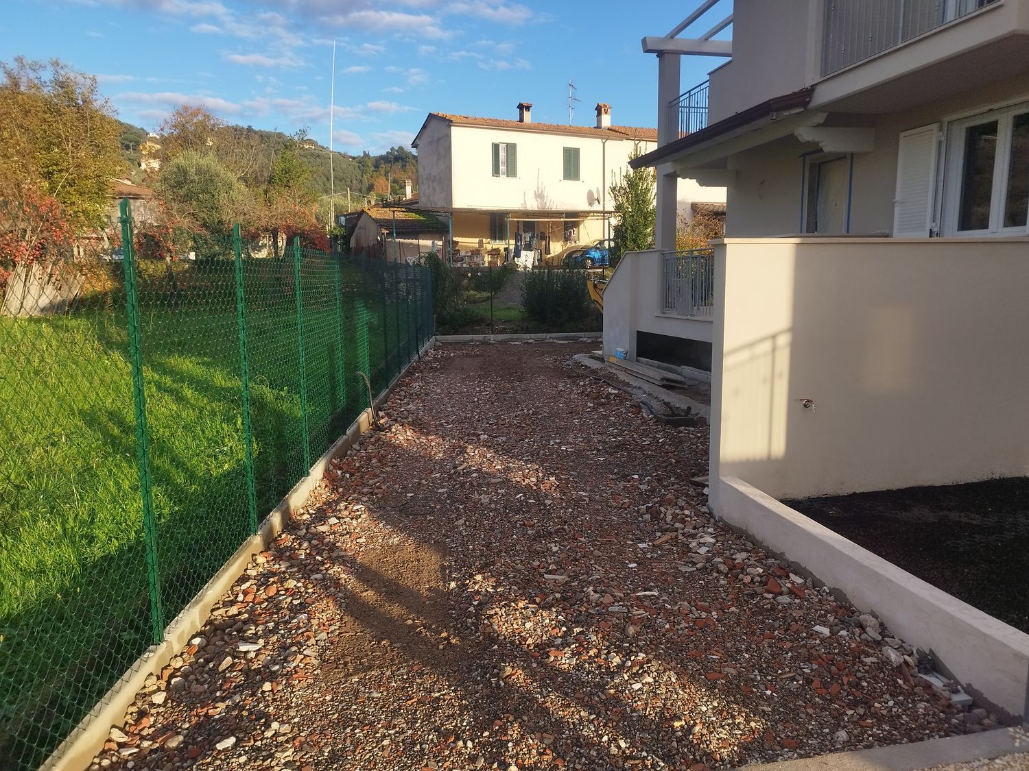 Giardino su due lati con posto auto. Riscaldamento a pavimento con pompe di calore, pannello fotovoltaico, infissi in PVC, aria condizionata.