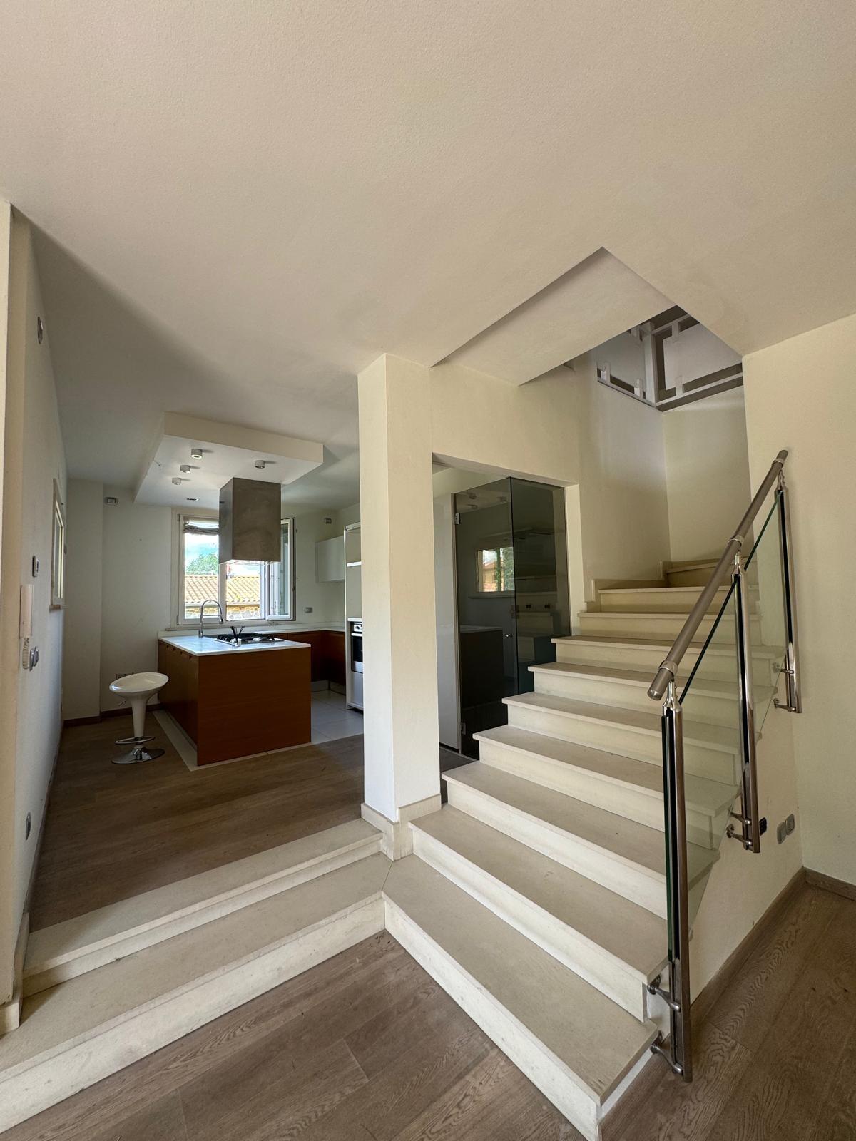 La villa vanta finiture di altissimo livello: scala principale in pietra grigia e scala mansarda in pietra bianco latte.