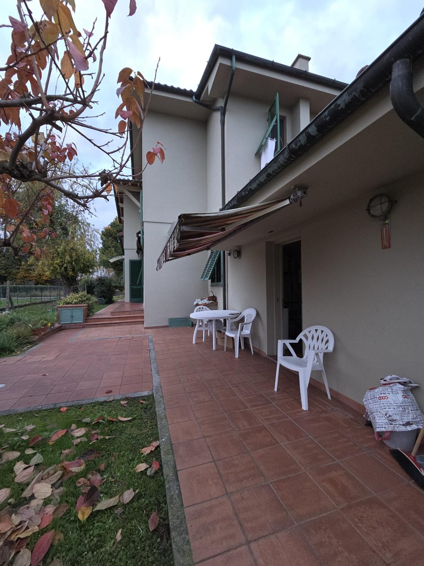 A corredo garage di circa 15/20 mq al momento suddiviso in due ripostigli ma da mobili rimovibili e per tanto di nuovo utilizzabile x la macchina se uno vuole oltre a pergolato esterno per le auto. Giardino privato d'intorno di circa 1200 mq ben tenuto e completamente recintato.