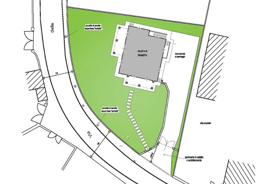 Si compone di piano Seminterrato, Terreno e Primo per un totale di circa 280 metri quadrati, nonché resede a parcheggio e giardino su quattro lati di metri quadrati 500. Nuova costruzione, adeguata alle nuove normative antisismiche, ad oggi si presenta allo stato grezzo, ancora priva di finiture ed impianti, con possibilità di personalizzare le distribuzioni interne dei locali.
