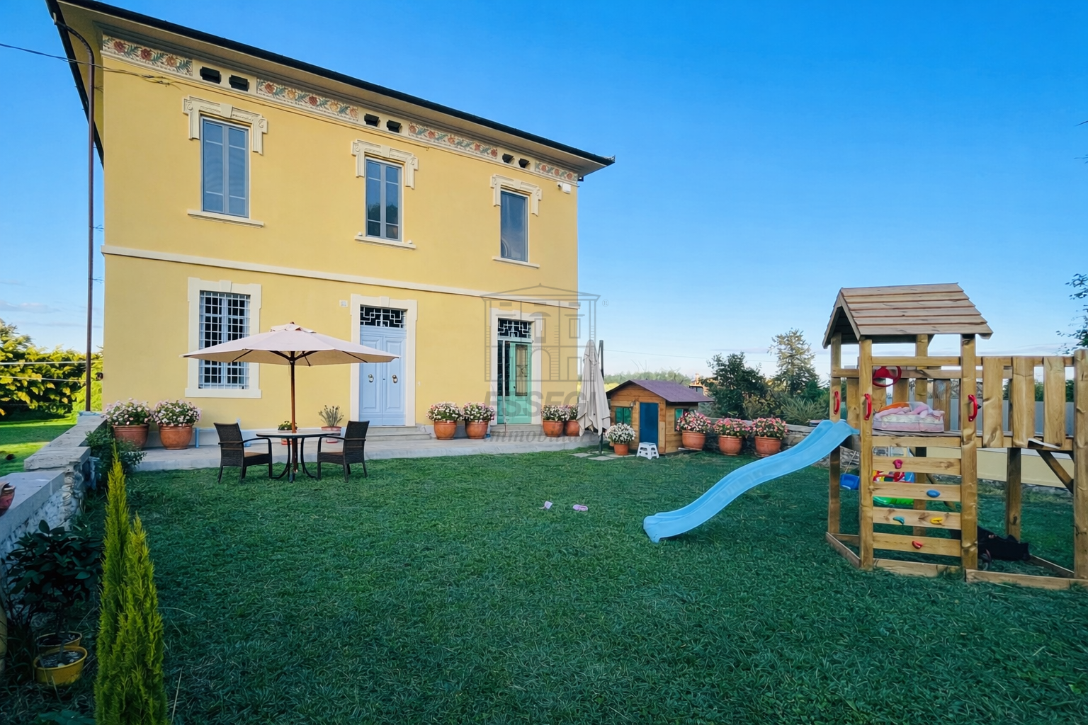 IA04213 VILLA LIBERTY ELEGANTEMENTE RISTRUTTURATA Nel suggestivo contesto di Castelvecchio di Compito, a pochi passi dallantico borgo medievale in pietra e della splendida campagna del Compitese rinomata per i suoi estesi uliveti, i dolci paesaggi collinari e la celebre mostra delle camelie, con un giardino di rilevanza internazionale Essegi Immobiliare propone in esclusiva una raffinata villa Liberty, sapientemente ristrutturata per coniugare comfort abitativo e design contemporaneo, valorizzando al contempo il fascino storico e architettonico dellimmobile.