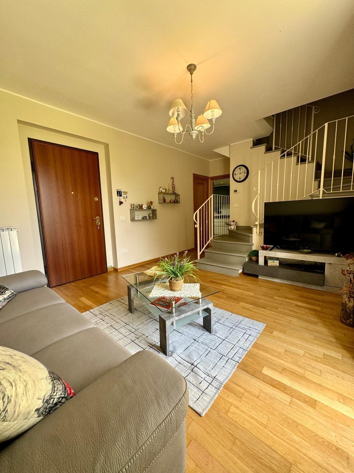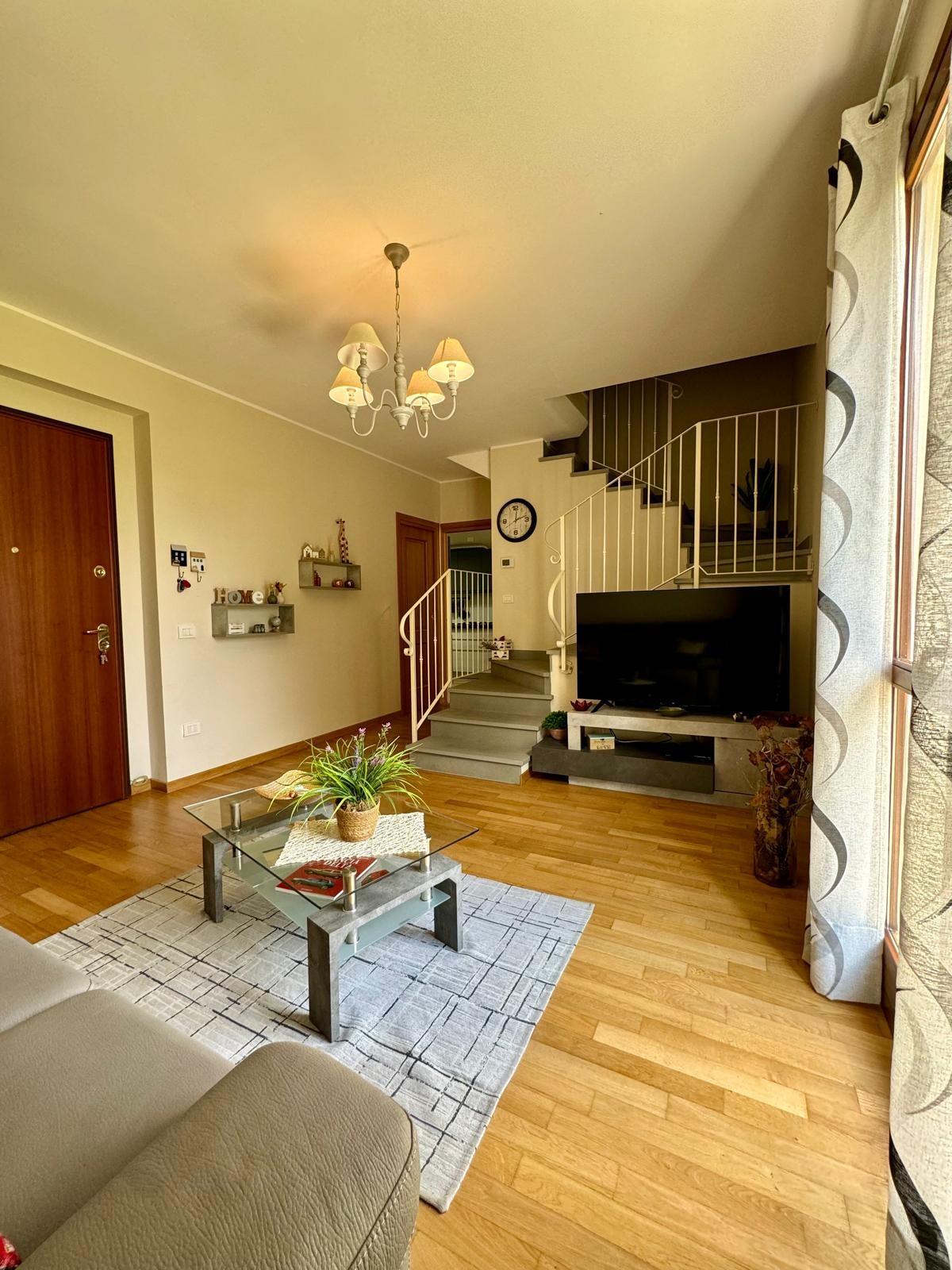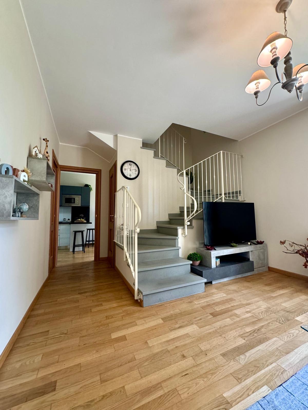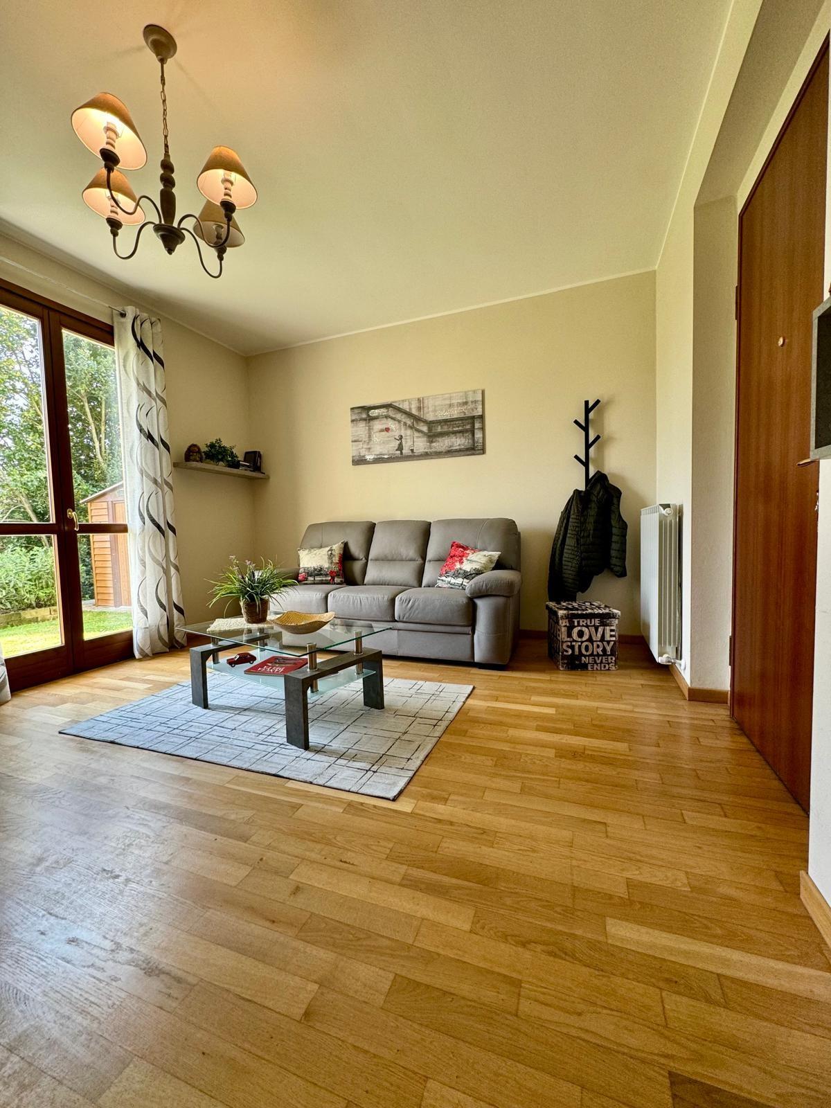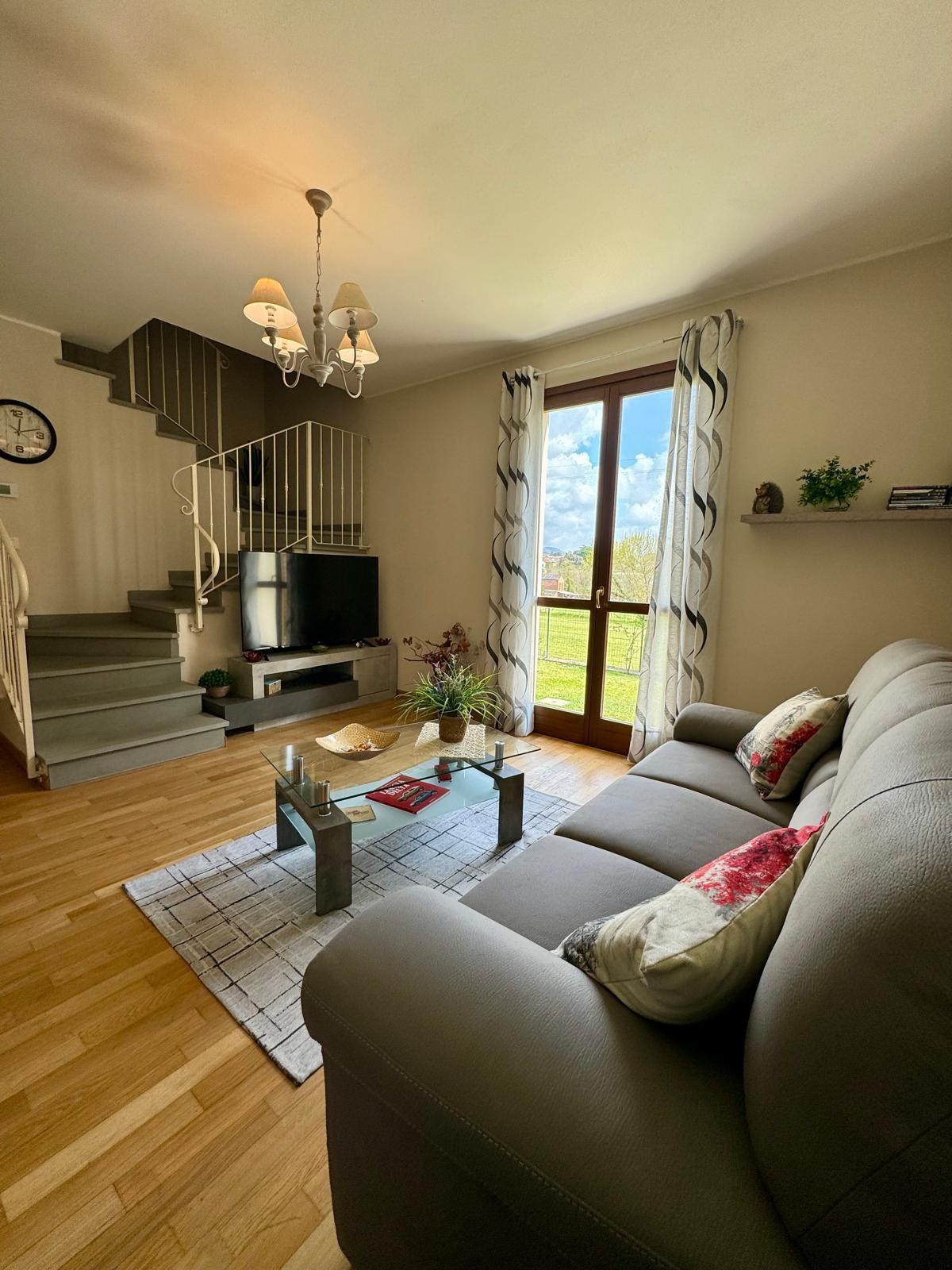 Si compone al piano terra da ingresso-soggiorno con accesso diretto al giardino, disimpegno dove troviamo un bagno con doccia finestrato e un comodo ripostiglio sottoscala, completa il piano terra cucina-pranzo con accesso diretto al giardino; al piano primo, disimpegno, camera matrimoniale con balcone, camera singola e spazioso bagno.