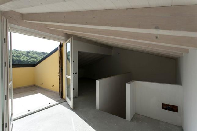 L'immobile è composto da al piano terra locale open space oltre ripostiglio e un bagno, al piano primo da due camere, bagno e un terrazzo, al piano secondo da mansarda dove è possibile realizzare la terza camera con terrazzo.