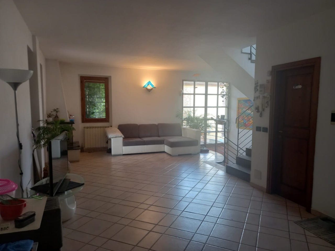 L'immobile ha un doppio ingresso, uno direttamente dal giardino carrabile di circa 600 mq., l'altro dal seminterrato dove troviamo un comodo vano ingresso con scala di accesso al piano superiore, il garage, un bagno/lavanderia e un particolarissimo locale di 5 mq. adibito a piscina interna/sauna con impianto acqua salata.