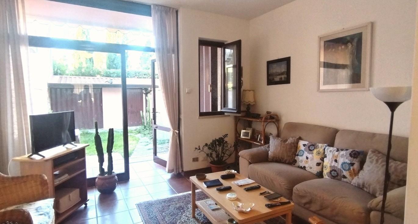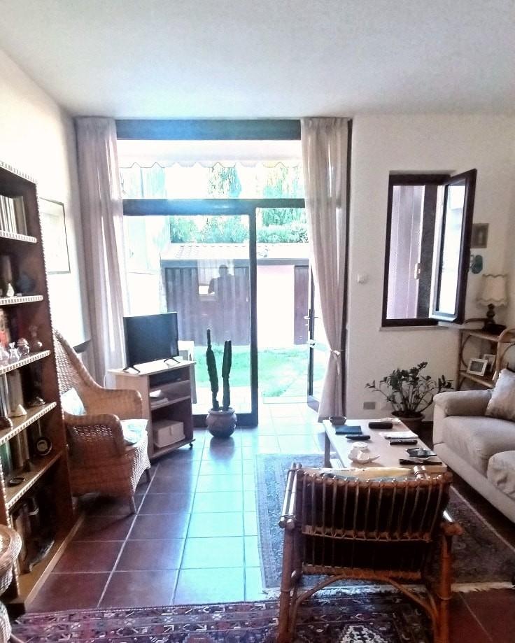 Ampia vetrata con accesso su giardino privato dotato di doppio locale adiacente ad uso cantina.